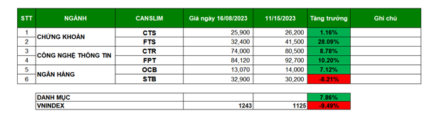 Hiệu quả của danh mục Canslim Quý 3/2023: