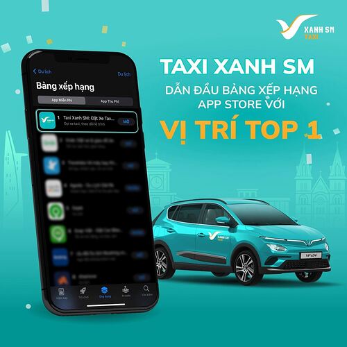 Bất chấp điều đó, GSM mới đây thông báo trên fanpage Facebook rằng chỉ sau 4 tiếng vận hành thử nghiệm vào sáng 5/4, ứng dụng Taxi Xanh SM đã vươn lên đứng số 1 Bảng xếp hạng App Store của nền tảng iOS về lượt tải trong danh mục ứng dụng Du lịch.