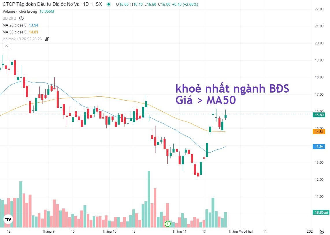 NVL tiếp tục tăng tốt, thanh khoản liên tục được cải thiện cho thấy cổ phiếu này vượt trội trong ngành BĐS. Ngoài ra cổ phiếu nằm trên MA50 cho thấy nếu xu hướng dòng tiền tìm tới dòng BĐS đây sẽ là cổ phiếu có xu hướng trading tốt (giống CII).