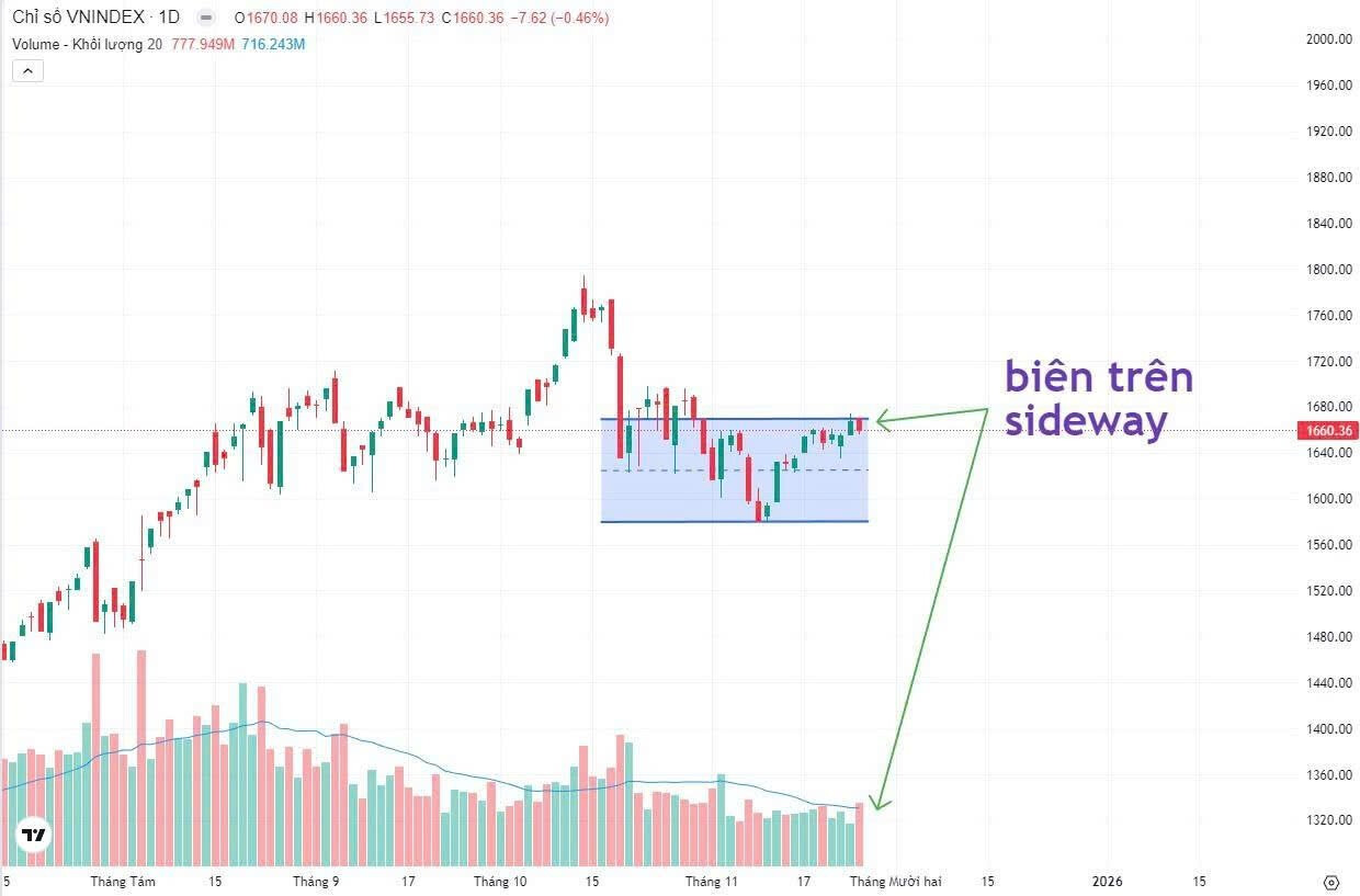 Kịch bản xấu có thể xảy ra giai đoạn hiện tại: Sideway nhưng biên độ co hẹp.