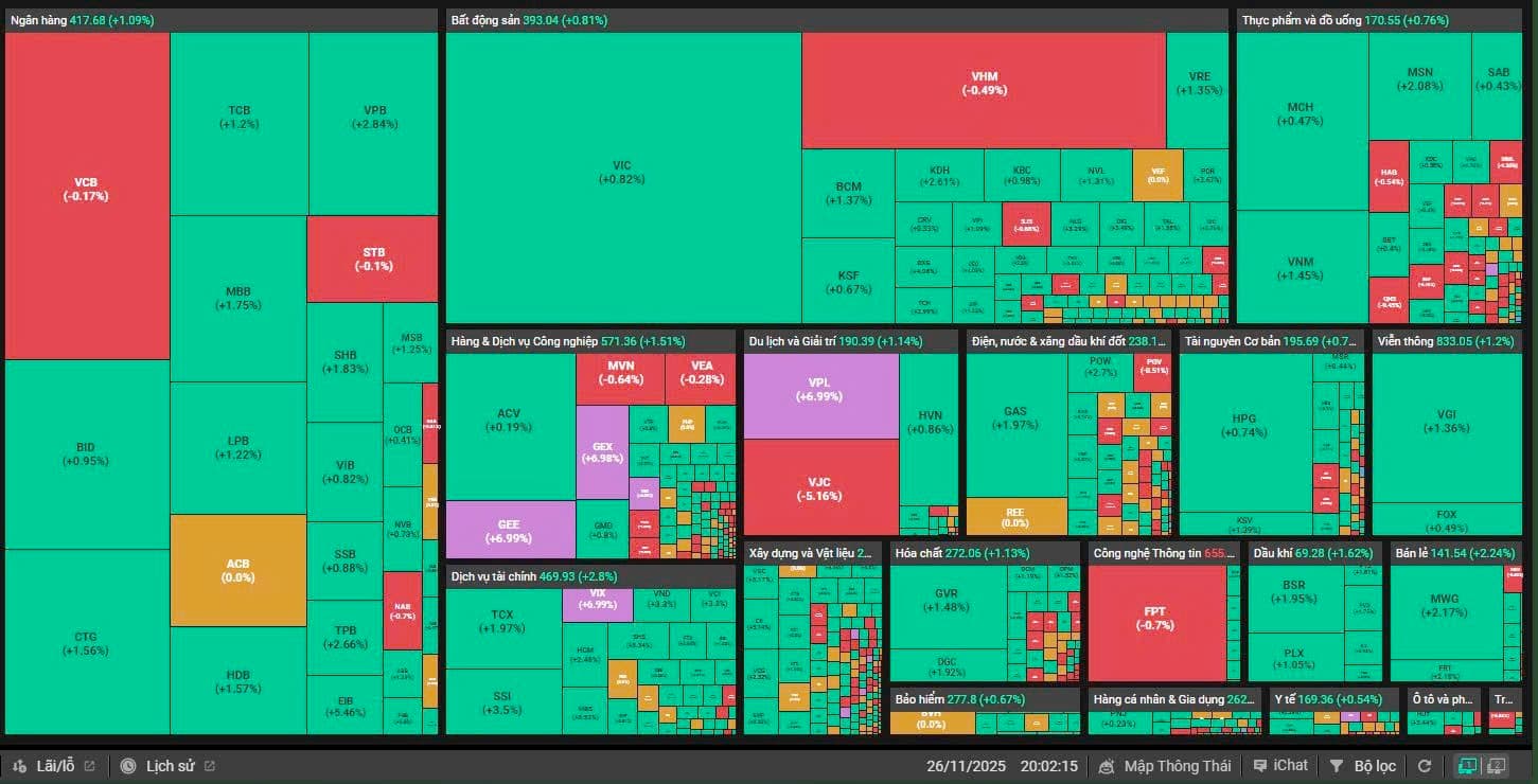 Dẫu vậy, tâm lý thị trường chưa thực sự sáng lên. Độ rộng vẫn lệch về phía giảm và đà tăng chủ yếu xoay quanh nhóm VIN, khiến thị trường chung thiếu sự đồng thuận. Điều then chốt lúc này không phải chỉ số đẹp đến đâu, mà là liệu dòng tiền có chịu lan sang nhiều nhóm ngành khác hay vẫn xoay vòng trong hệ sinh thái VIN.