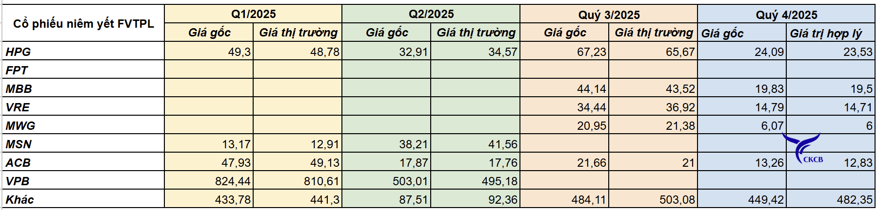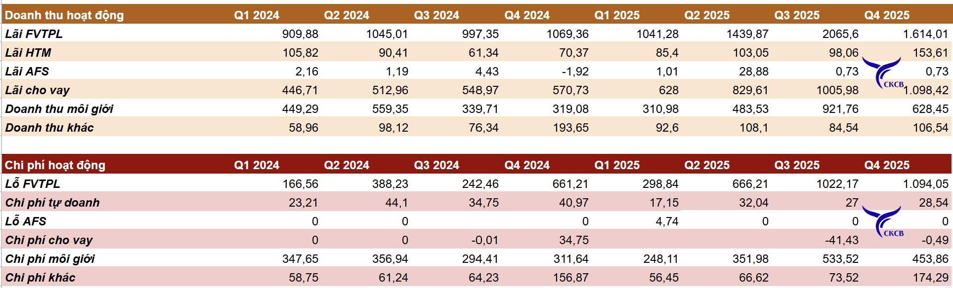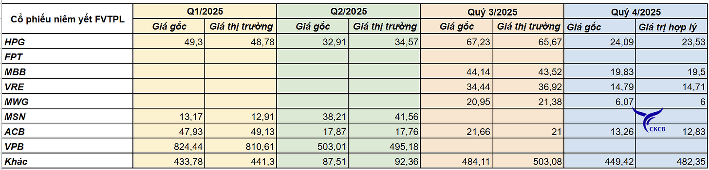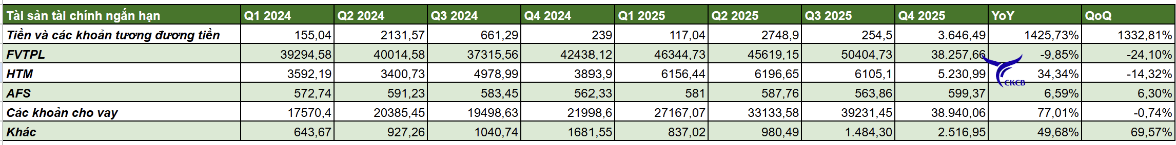 3. Mảng Tự doanh (FVTPL, AFS, HTM): tăng cùng kỳ nhưng giảm nhẹ quý trước