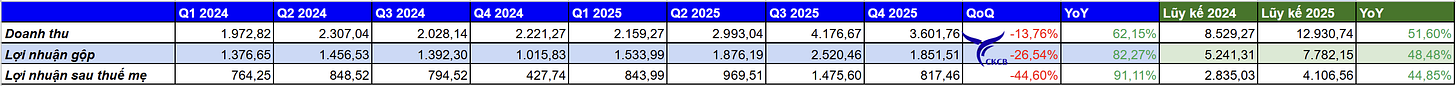 1. Kết quả kinh doanh Quý 4/2025: