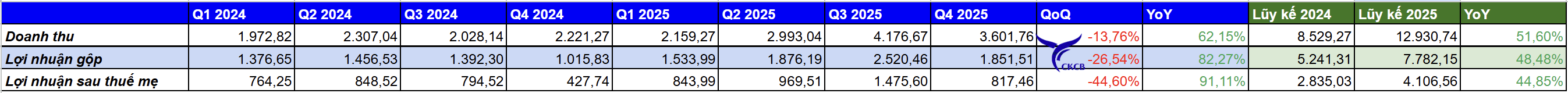 2. Kết quả kinh doanh lũy kế cả năm 2025: vẫn tăng trưởng rất tốt