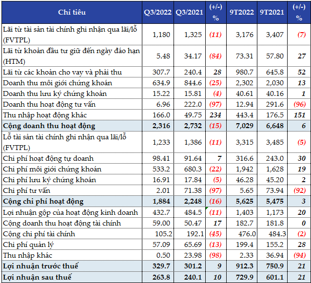 Hoạt động chứng khoán đầu tư cũng ghi nhận lợi nhuận giảm so với cùng kỳ năm trước, từ 94 tỷ đồng xuống còn 24 tỷ đồng, tính chung 9 tháng ngân hàng giảm hơn 71% trong khoản đầu tư này.