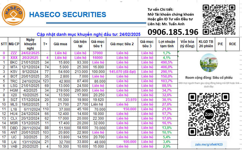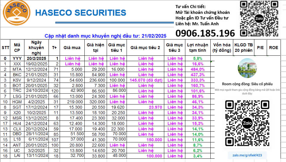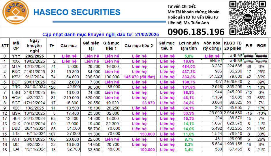 Em gửi Anh/Chị cập nhật danh mục đầu tư, đầu cơ 21.02.25