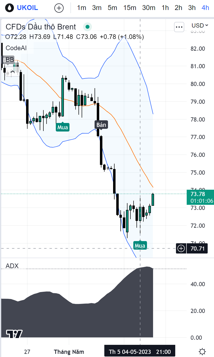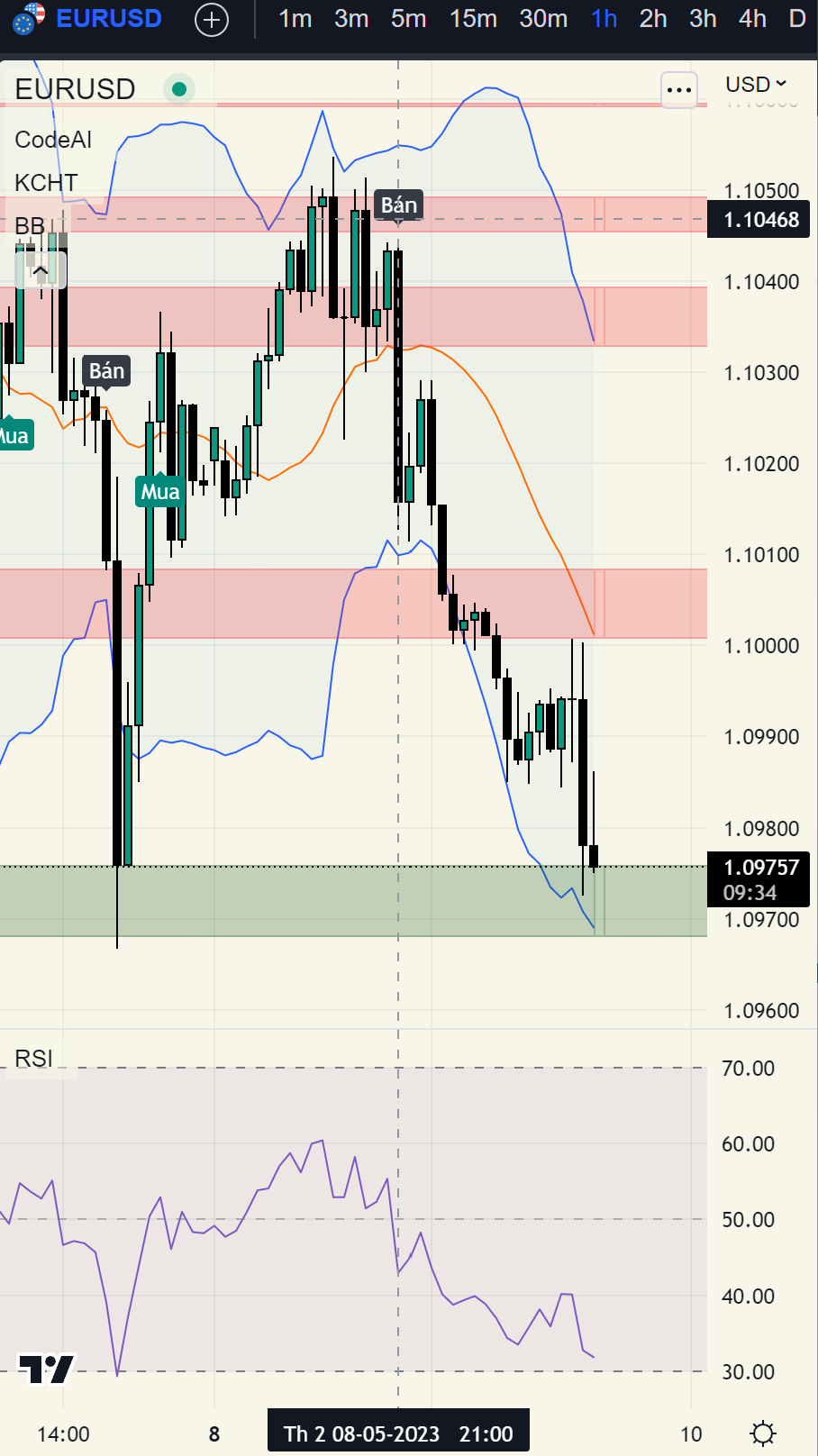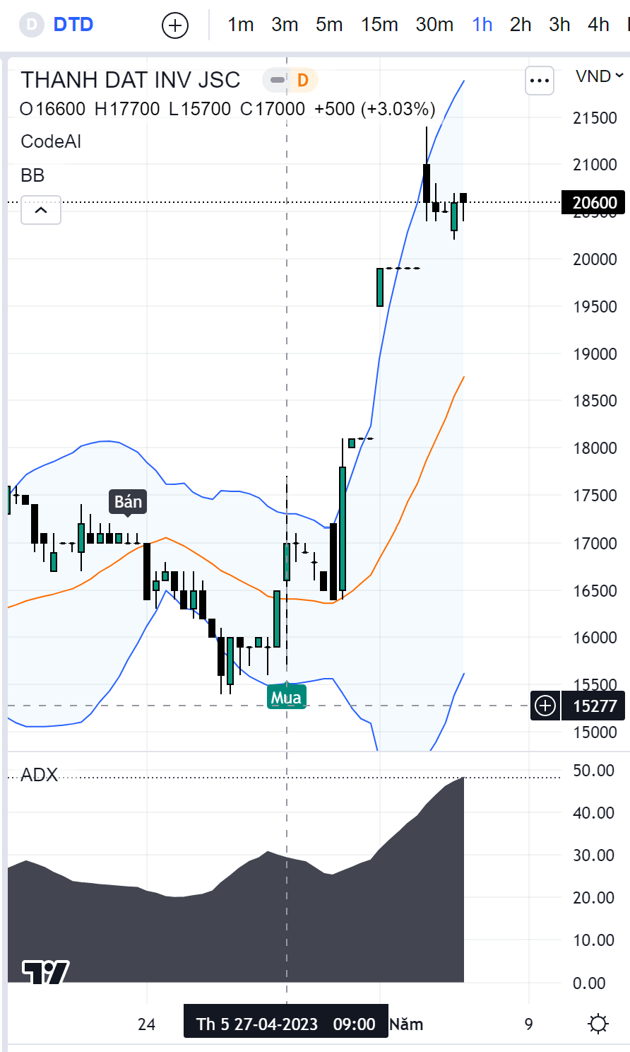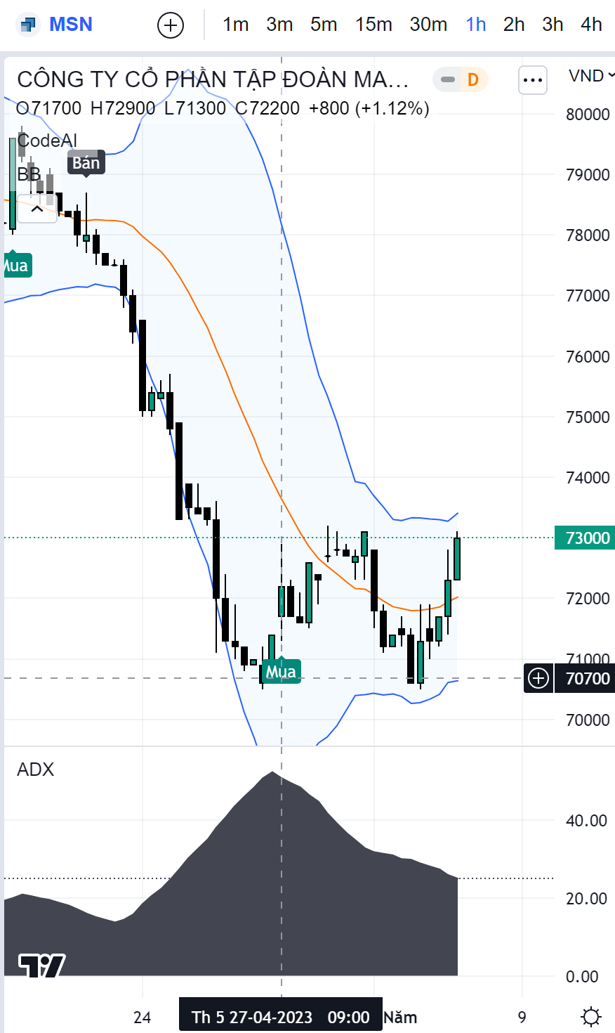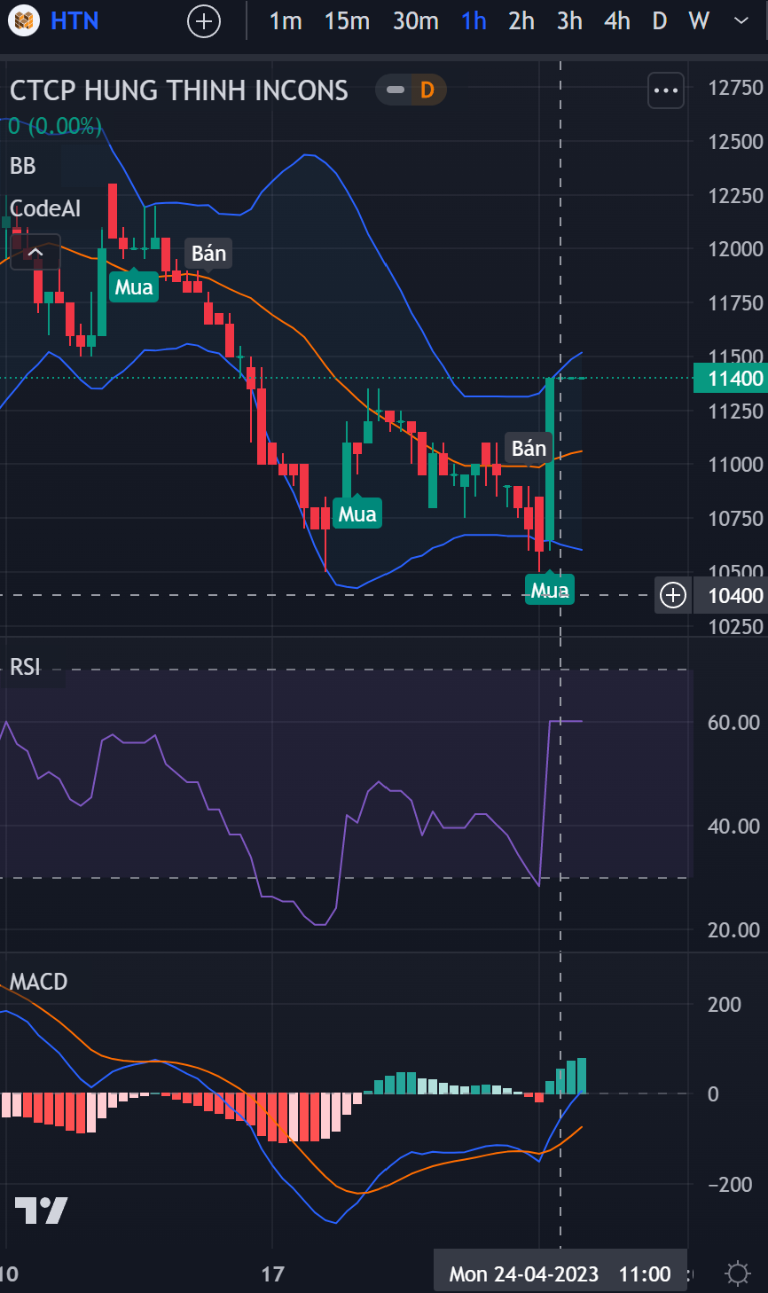 H1: tín hiệu Mua mới nhất ở khung H1 là hôm nay, trước đó có tín hiệu Bán nhưng do nằm trong BB hẹp do vậy không ghi nhận.