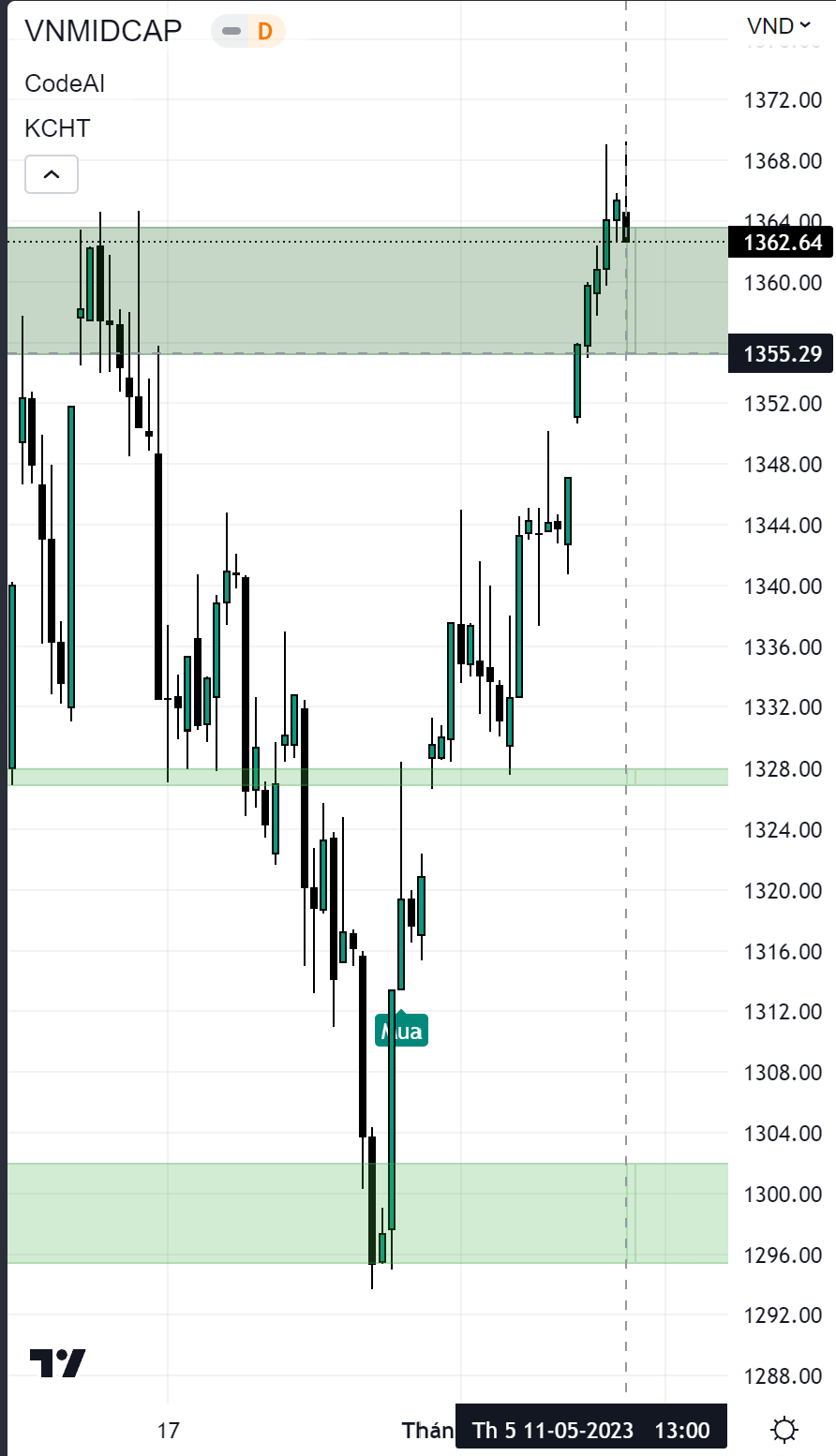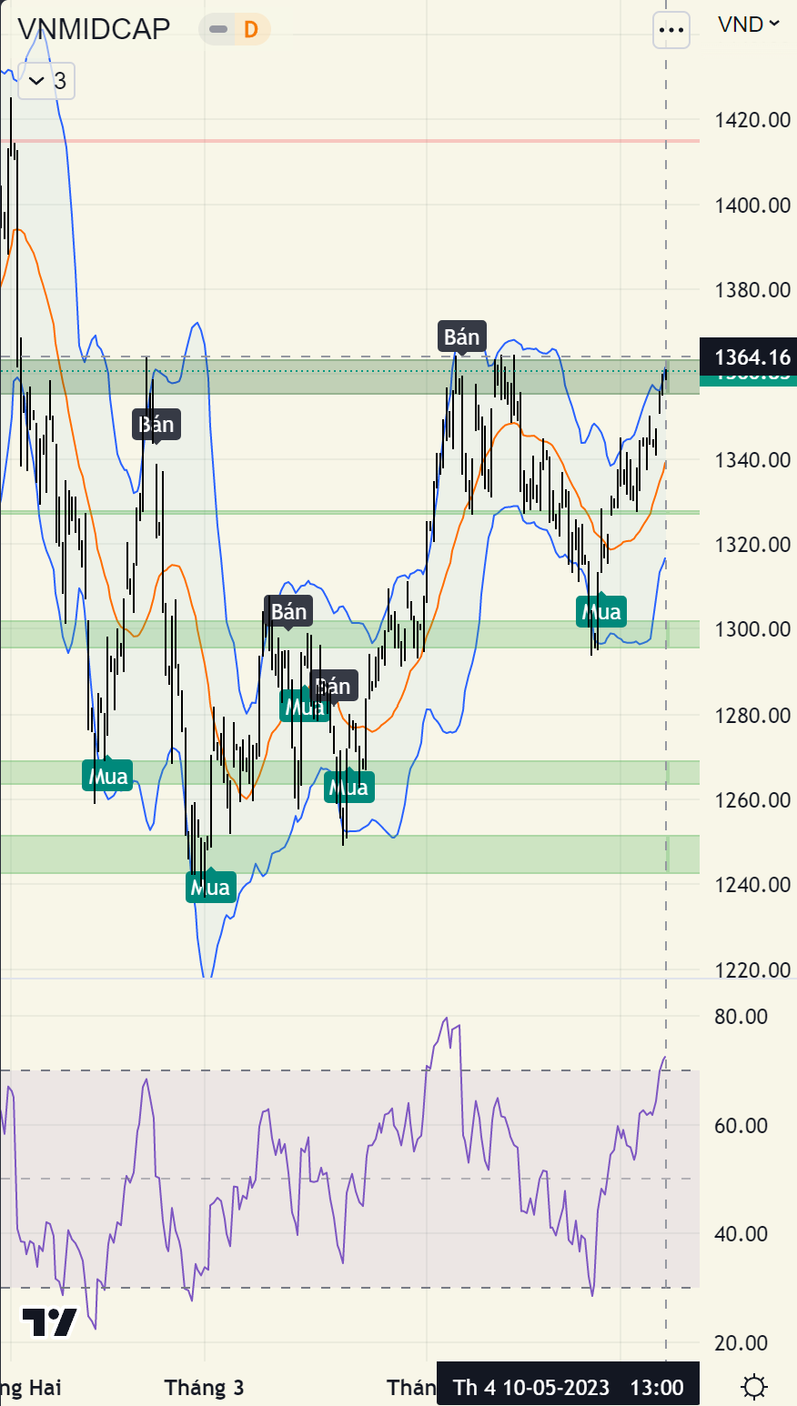 VNMIDCAP: nhóm midcap khả quan hơn khi tín hiệu mới đã xuất hiện và đường giá chinh phục kháng cự 1356 nhẹ nhàng, tuy nhiên vẫn gặp chỉnh nhẹ khi chạm 1362.