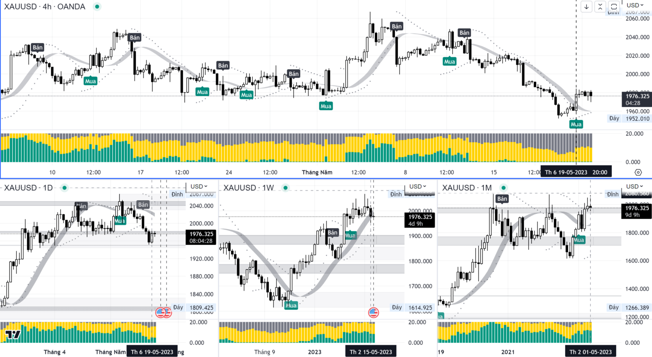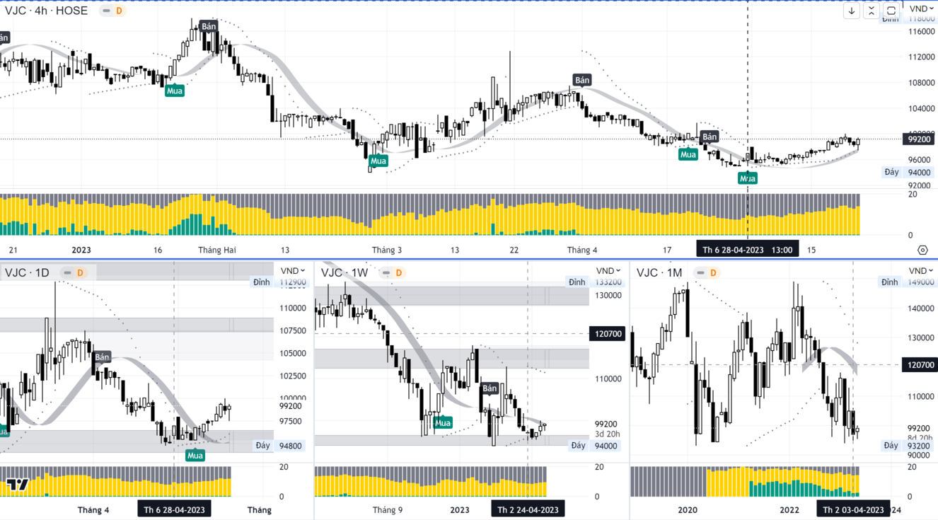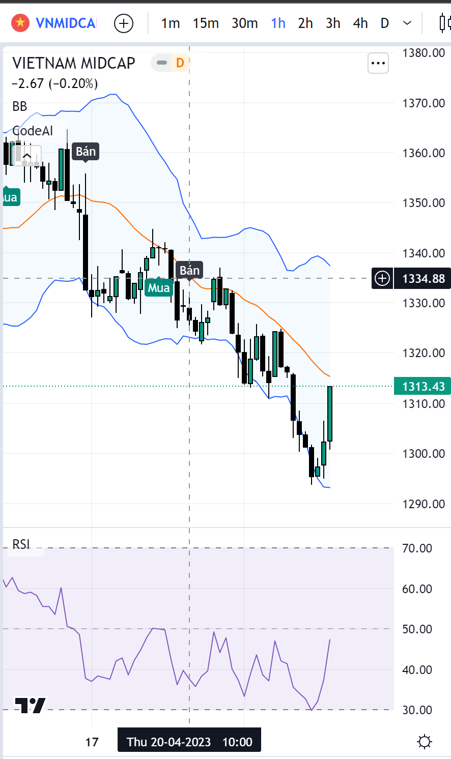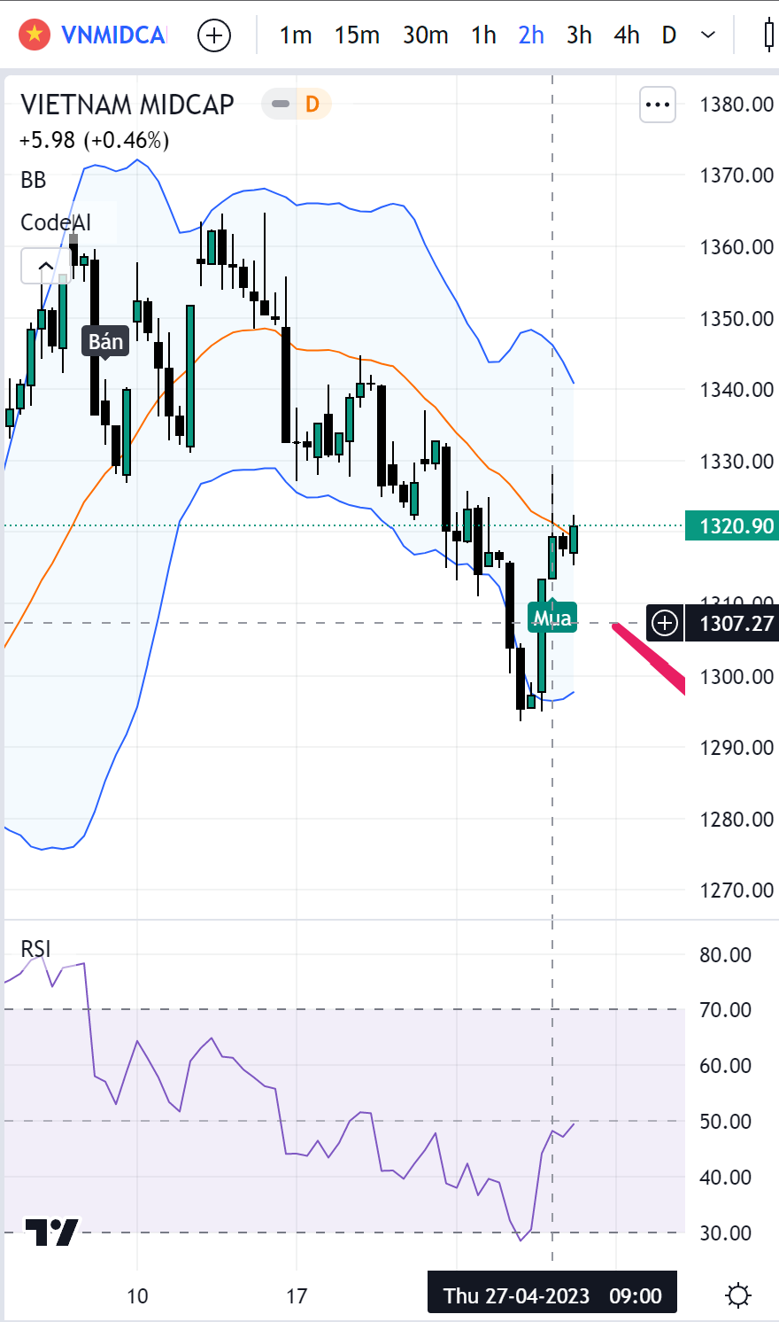 Tương tự hôm qua, chưa có tín hiệu Mua uy tín ở các chỉ số kể từ sau tín hiệu Bán ngày 14/4/2023. VNSMALLCAP chỉ báo mua ở khung H1 hôm 18 chưa nhảy lên khung H2.