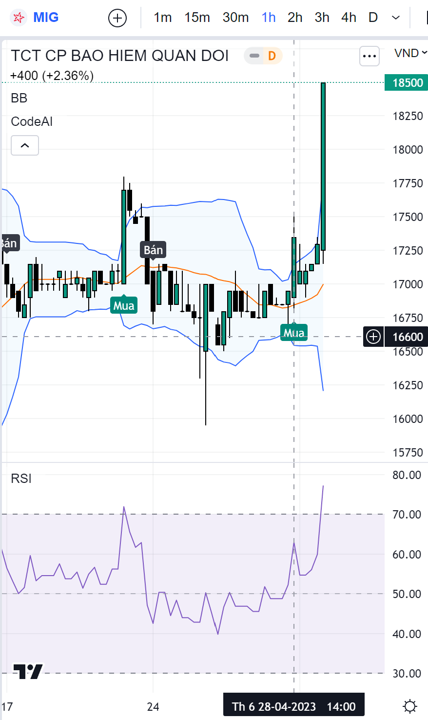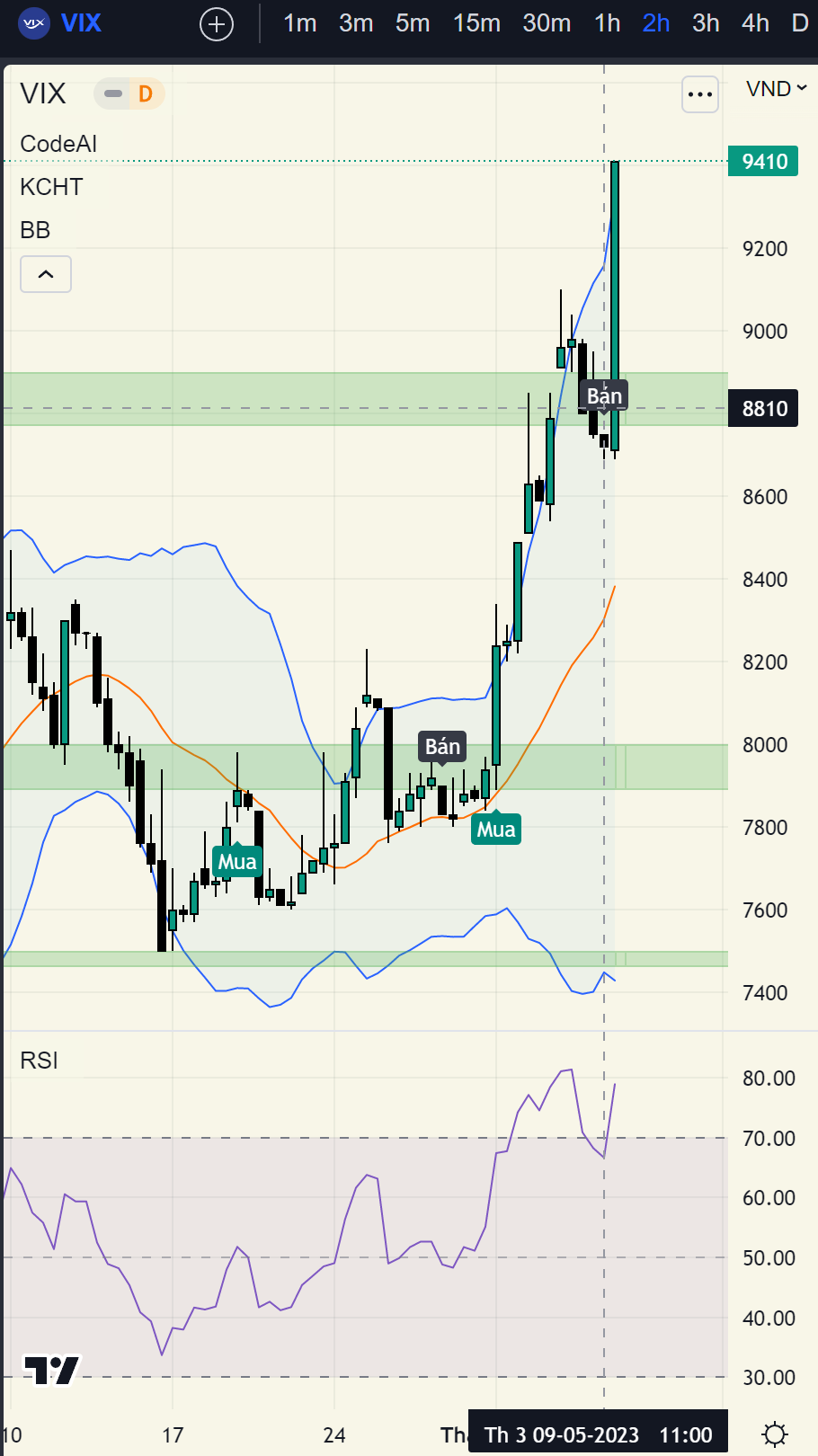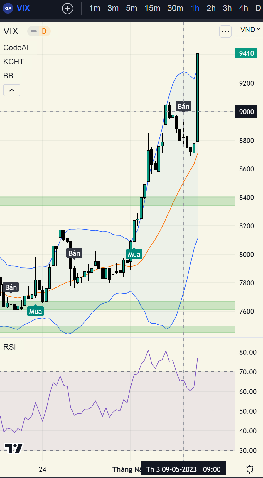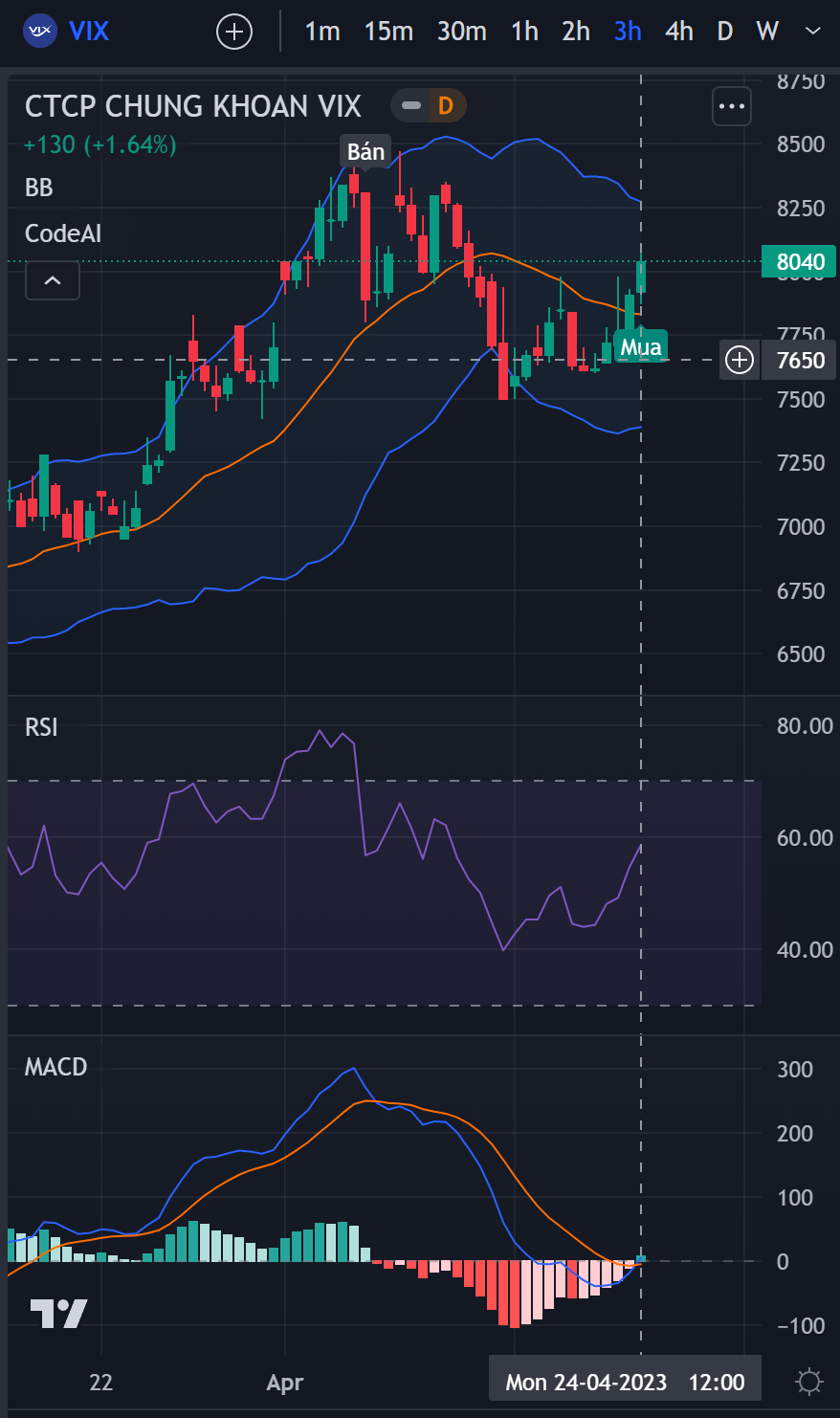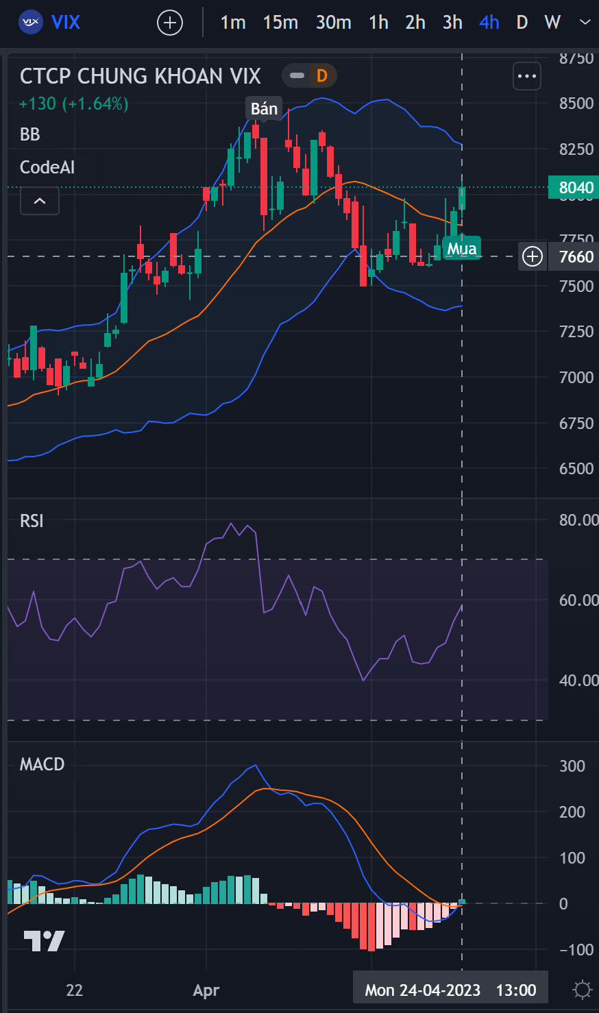 VIX: có vẻ khá thú vị khi H1-H4 đều cho tín hiệu Mua mới nhất, đồng thời VIX cũng là mã ngành chứng khoán có mức tăng chưa rõ ràng như FTS, BSI…