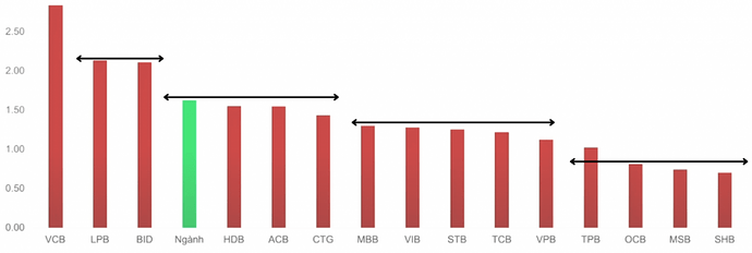 So sánh với các Ngân hàng khác, MBB nổi bật với tỷ lệ CASA khoảng 35%, thuộc nhóm cao trong ngành, giúp giảm chi phí huy động vốn và tăng khả năng sinh lời. NIM của MBB cũng thuộc top cao, cho thấy khả năng quản lý vốn hiệu quả và tối ưu hóa lợi nhuận. Điều này khẳng định MBB là ngân hàng có nền tảng vững chắc và khả năng sinh lời bền vững.