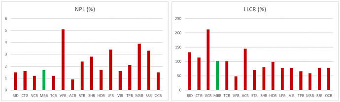 MBB duy trì tỷ lệ nợ xấu (NPL) nhìn chung đang hơi cao hơn so với nhiều ngân hàng khác. Tuy nhiên về tỷ lệ bao phủ nợ xấu (LLCR) vẫn đạt mức ổn định, cho thấy khả năng dự phòng nợ xấu khá tốt, góp phần củng cố an toàn tài chính và có khả năng chống chịu trước các biến động.