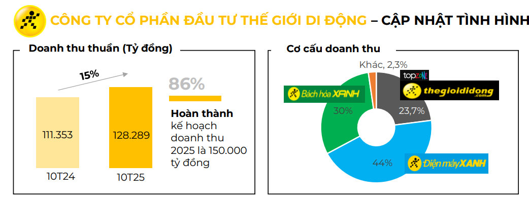 - Riêng tháng 10/2025, chuỗi ghi nhận doanh thu hơn 10,3 ngàn tỷ đồng, đánh dấu tháng tăng