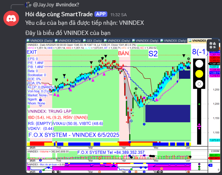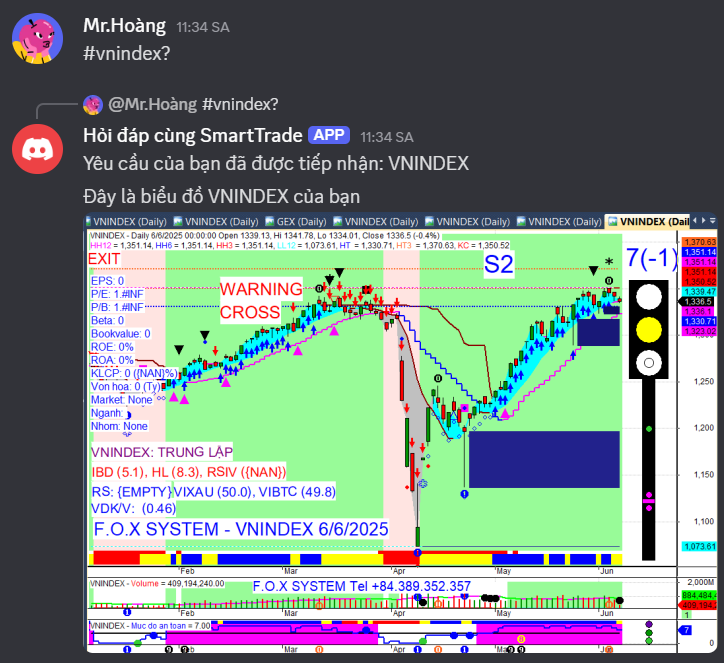 Vnindex cuối ngày 6/6/2025.