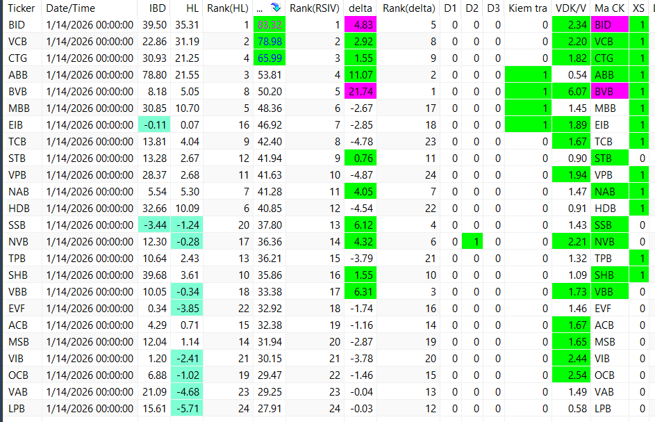 Ngân hàng tư nhân: Một số mã như VPB, HDB, TCB, TPB, VIB điều chỉnh.
