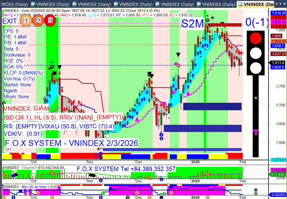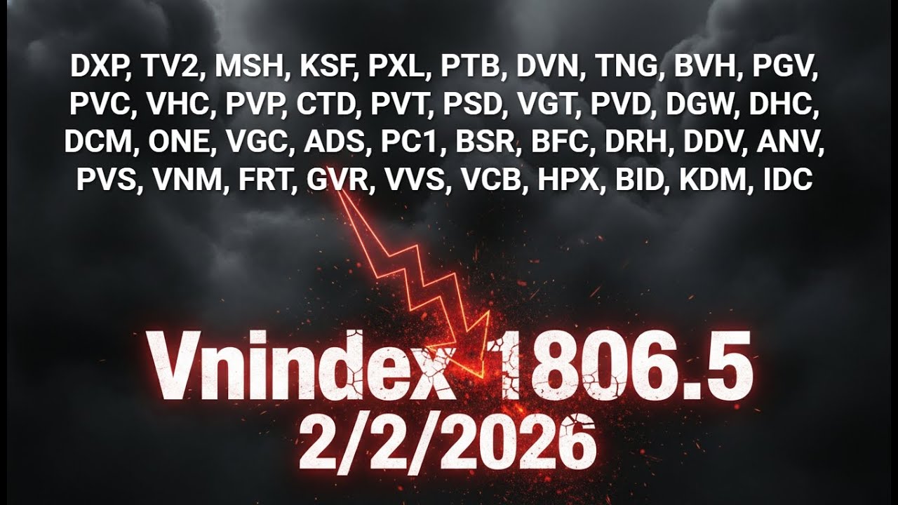 VN-Index phiên 02/02/2026: Đóng cửa 1.806,5 điểm, giảm 22,54 điểm (-1,23%).