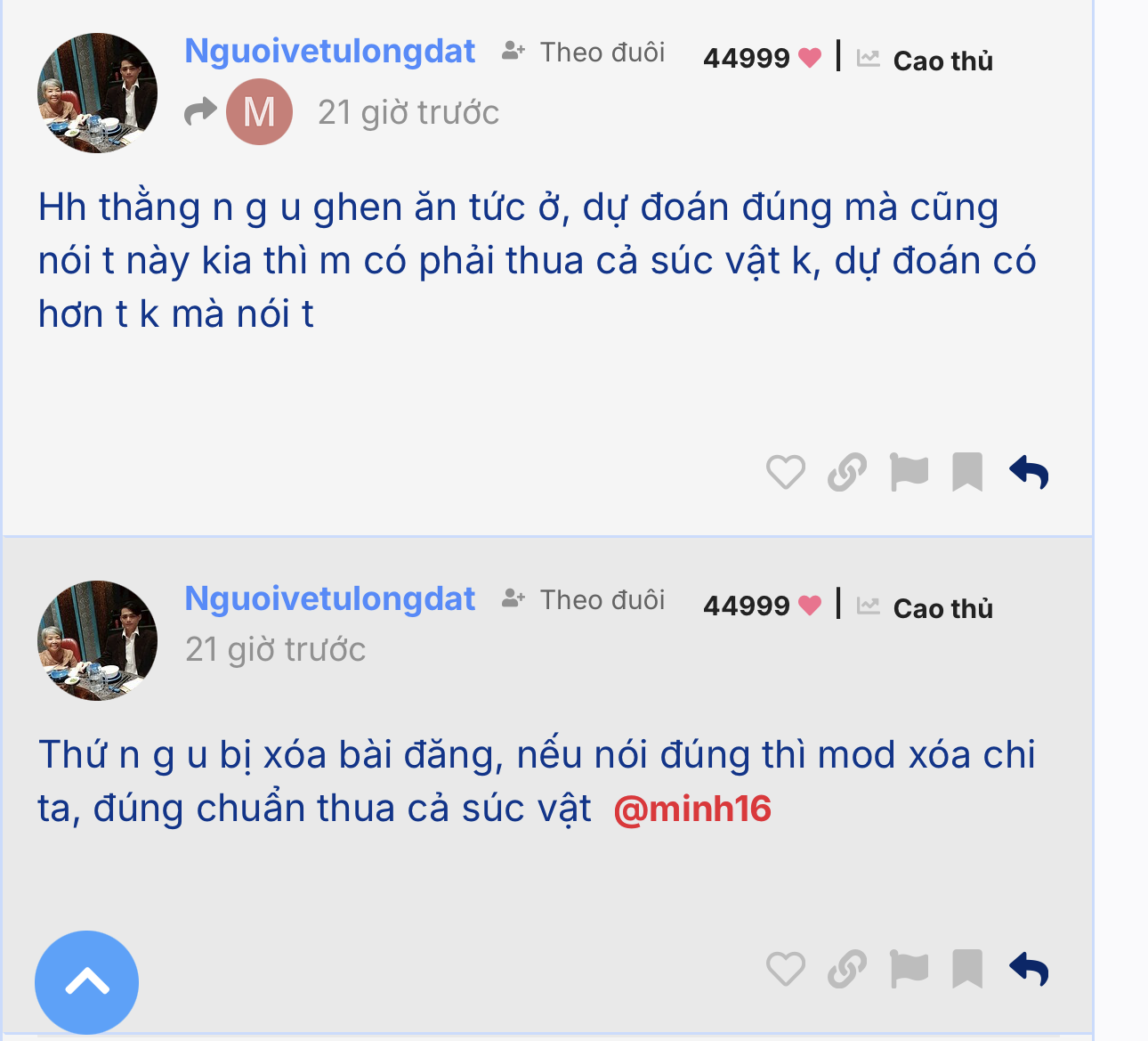 @SuperModerator để thằng đa cấp này nó mở ngập tràn Topic - ăn xuôi nói ngược - chửi bới bất kỳ ai - mặt dày vô sỉ - bán sách từ thiện … Mà không có bất kỳ động thái nào thì có đã tròn trách nhiệm chưa ? ![]()