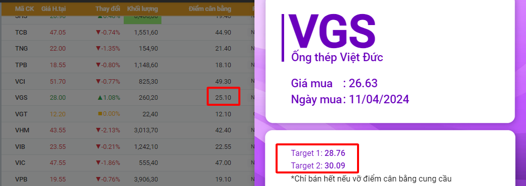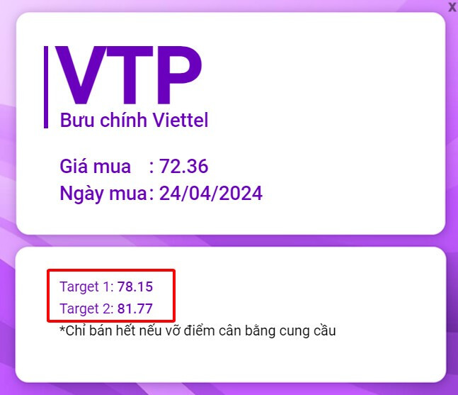 Các thành viên đang nắm giữ VTP có thể tham khảo 2 Target ngắn hạn sau khi giá cp này vượt điểm cân bằng phiên 24/4