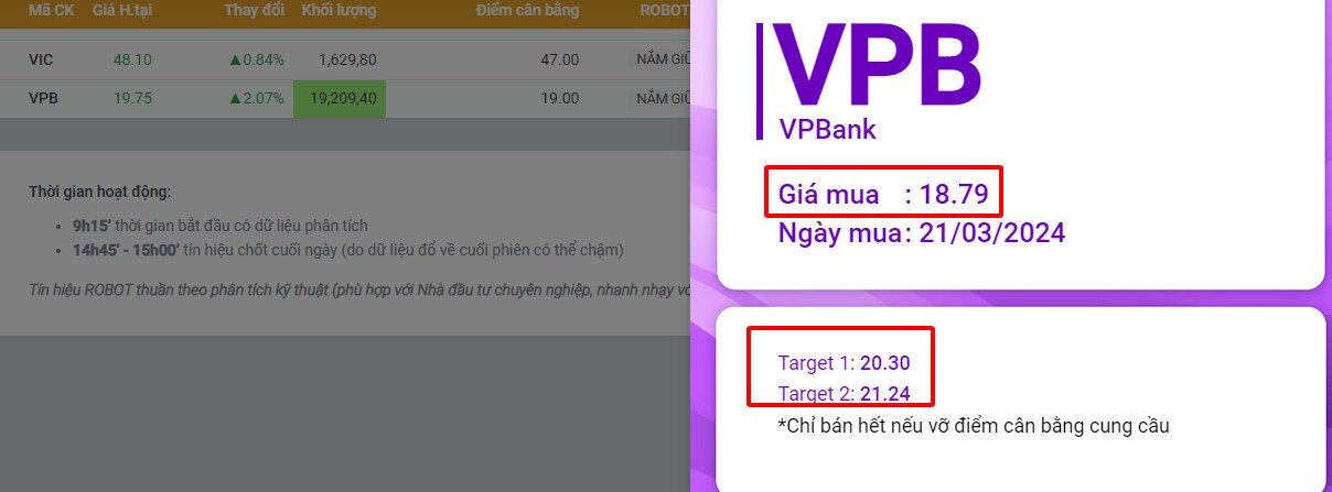 Chương trình cung cấp user tool phần mềm phân tích kỹ thuật trải nghiệm miễn phí 1 năm cho các thành viên đang đầu tư tại các công ty chứng khoán hợp tác là VND , VPS , SSI , TCBS , VPBS . Phần mềm Phân tích tự động điểm mua - điểm bán , Target cụ thể từng cổ phiếu thời gian thực trong phiên giúp chúng ta giao dịch mua - bán có cơ sở .![]()