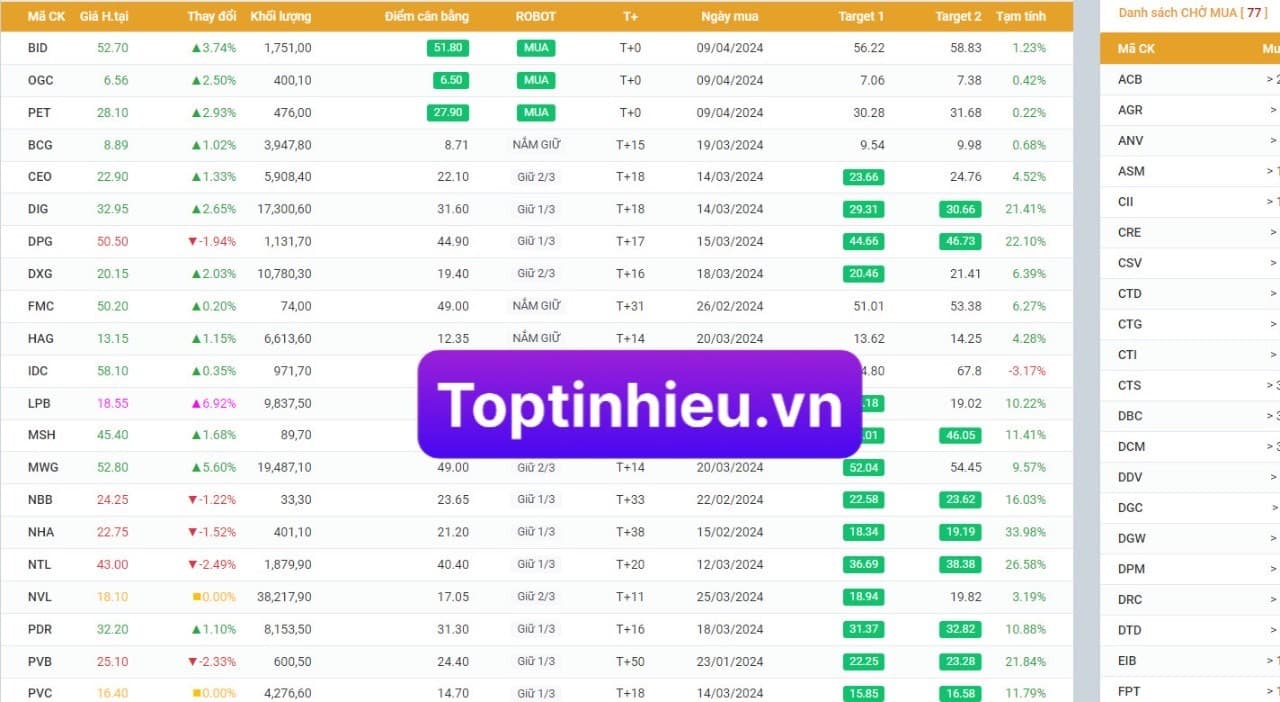 Trong phiên 12/04, thị trường đã bật tăng trở lại mạnh mẽ +18.4 điểm. Đặc biệt là cổ phiếu 𝑇𝑜𝑝𝑡𝑖𝑛ℎ𝑖𝑒𝑢.𝑣𝑛 khuyến nghị giữa tâm bão là 𝐋𝐏𝐁 đã TĂNG TRẦN và đạt mức lãi +16.16% . Ngoài LPB thì các cổ phiếu được 𝑇𝑜𝑝𝑡𝑖𝑛ℎ𝑖𝑒𝑢.𝑣𝑛 khuyến nghị gần đây đều là mã mạnh nhất trong dòng mạnh nhất như DIG - NTL (Bất động sản), DPG (Xây dựng), VGS (Thép), PVS (Dầu khí), CTS (Chứng khoán)…