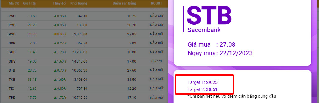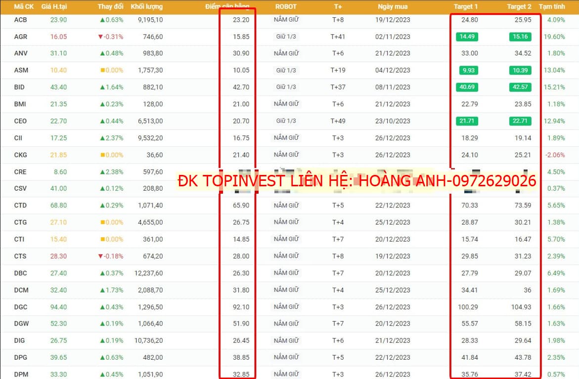 Cập nhập Target và điểm cân bằng các cổ phiếu trong danh mục theo dõi phiên 2/1/2024
