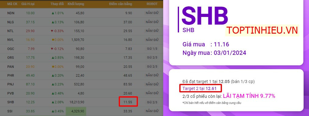 SHB phiên cũng đã gần đạt Target thứ 2 , các thành viên có hàng chú ý nắm giữ 2/3 tỉ trọng theo đúng nguyên tăc