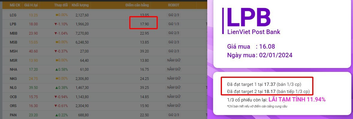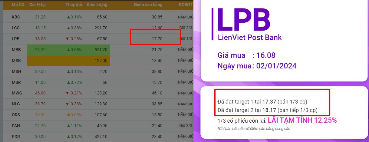 Các thành viên Chú ý theo dõi điểm cân bằng LPB hôm nay , hiện cp này đang lùi sát về điểm cân bằng 17.7