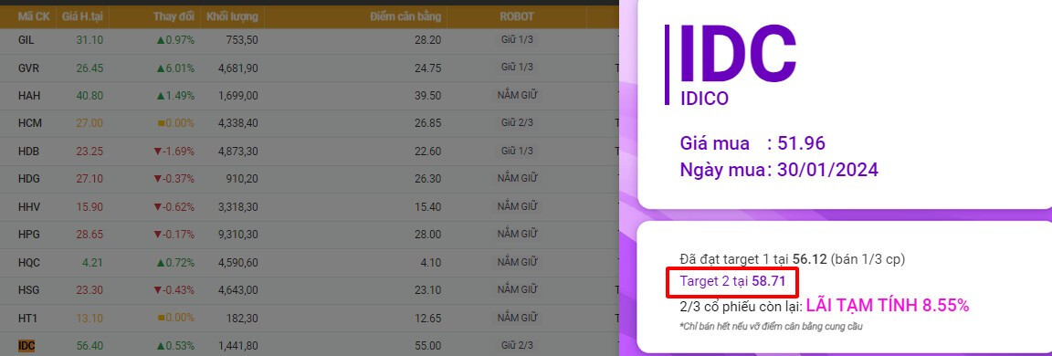 DCM cũng đã đạt target đầu tiên , các thành viên có thể canh bán 1/3 tỉ trọng . 2/3 tỉ trọng còn lại tiếp tục nắm giữ đợi Target 2