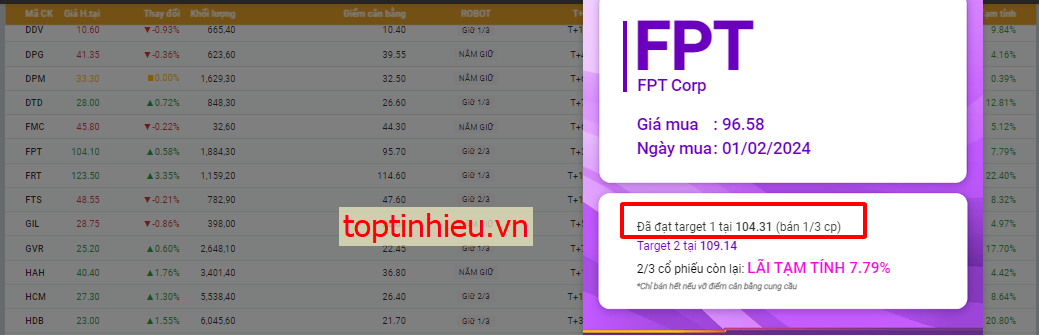 FPT phiên nay đã đạt Target đầu tiên sau điểm mua phiên 1 tháng 2 ,các thành viên nắm giữ chú ý canh bán 1/3 tỉ trọng