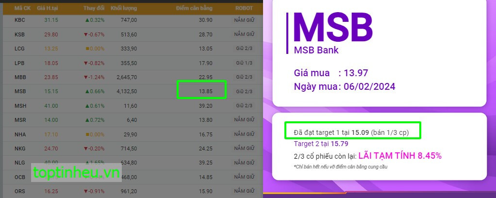 MSB sau khi vượt điểm cân bằng phiên 6/2 hiện đã hoàn thành target đầu tiên, tiếp tục giữ 2/3 tỉ trọng theo dõi điểm cân bằng hàng ngày đợi Target 2