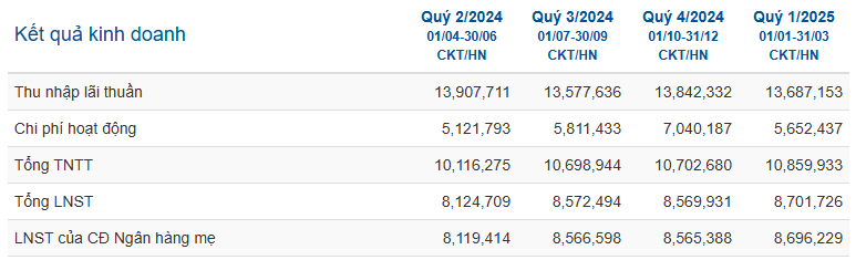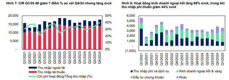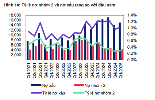 Tuy nhiên, biên lãi ròng (NIM) trong quý giảm 49 điểm cơ bản xuống còn 2,65%, do gia tăng tỷ trọng cho vay ngắn hạn có lãi suất thấp. Chất lượng tài sản có dấu hiệu suy giảm nhẹ, với tỷ lệ nợ xấu (NPL) tăng lên 1,03% và tỷ lệ bao phủ nợ xấu (LLR) giảm xuống còn 216,11%, phù hợp với diễn biến chung của toàn ngành ngân hàng trong giai đoạn đầu năm.