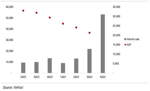 VinFast đã giao 25.000 xe trong 2M2025, chiếm khoảng 38% thị phần xe điện tại Việt Nam. Mục tiêu cho năm tài chính 2025 là 200.000 xe, với 30% doanh số từ thị trường nước ngoài. BCTC năm 2024 sẽ được công bố vào ngày 24 tháng 4 năm 2025.