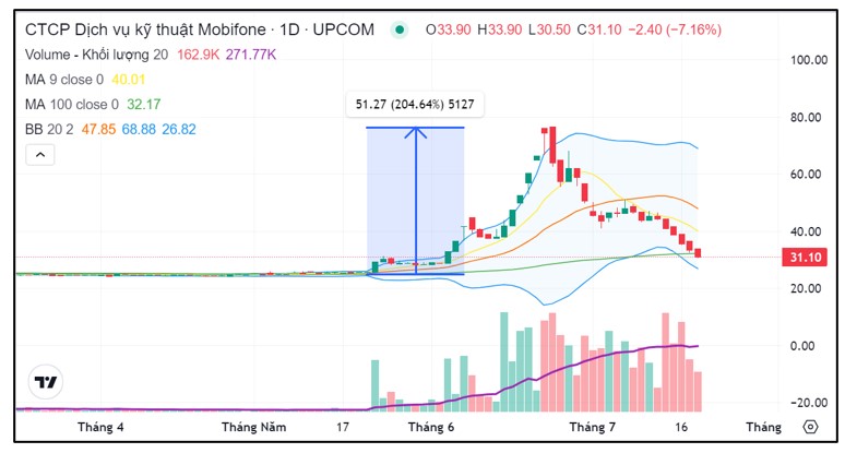 Ví dụ cổ phiếu MFS, cổ phiếu ngành viễn thông công nghệ có mức lợi nhuận hơn 200% trong vòng 1 tháng. Nếu không chốt lời cổ phiếu đã quay lại vùng giá ban đầu, bạn có thể mất hoàn toàn khoản lợi nhuận thâm chí thua lỗ nếu mua ở giai đoạn sau.