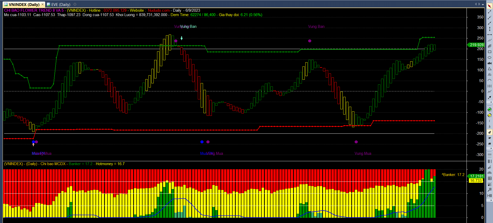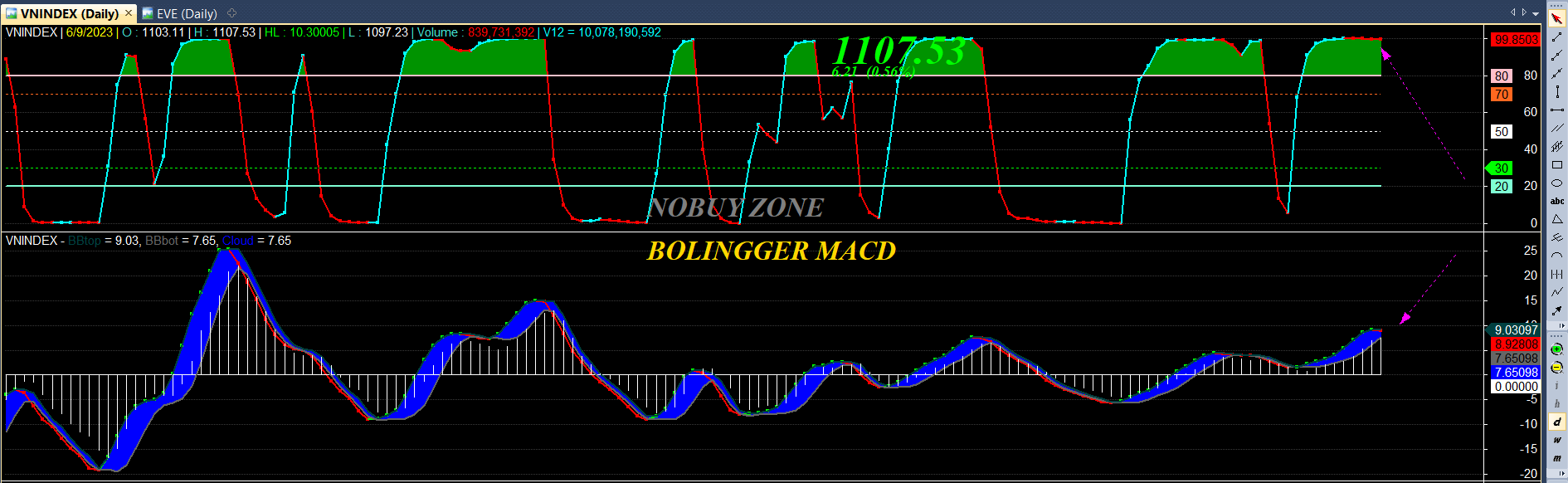 TT đã có bước tăng khá từ vùng 1035 đã hơn 80 point - cần nghỉ ngơi để cho bước tăng tiếp - Vùng cân bằng dự quanh ngưỡng 1075 để chiến lại.