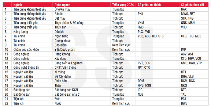 Nhóm ngành Khả quan: Chứng khoán (SSI); Điện (POW, NT2); Bán lẻ (MWG, PNJ), BĐS Khu công nghiệp (KBC, IDC); Thép (HPG, HSG).