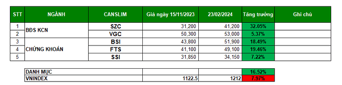 Danh mục Canslim quý IV/2023 cho hiệu quả tốt.