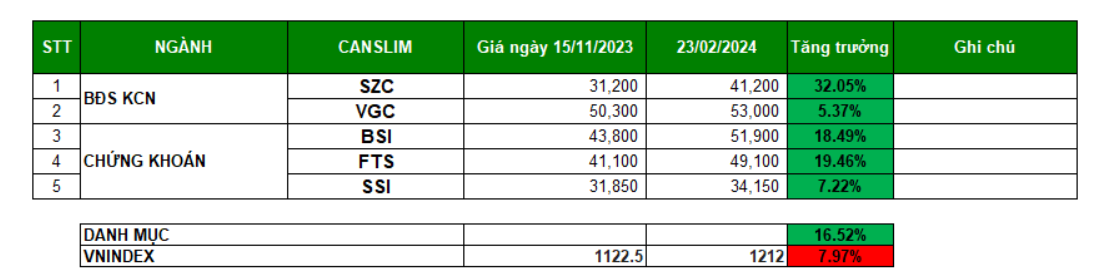 Em gửi khuyến nghị Danh mục Canslim quý I/2024