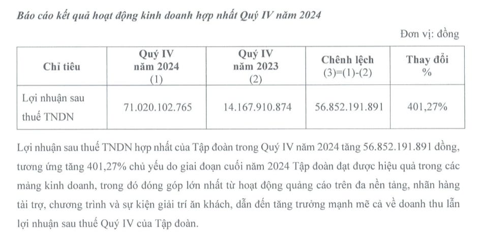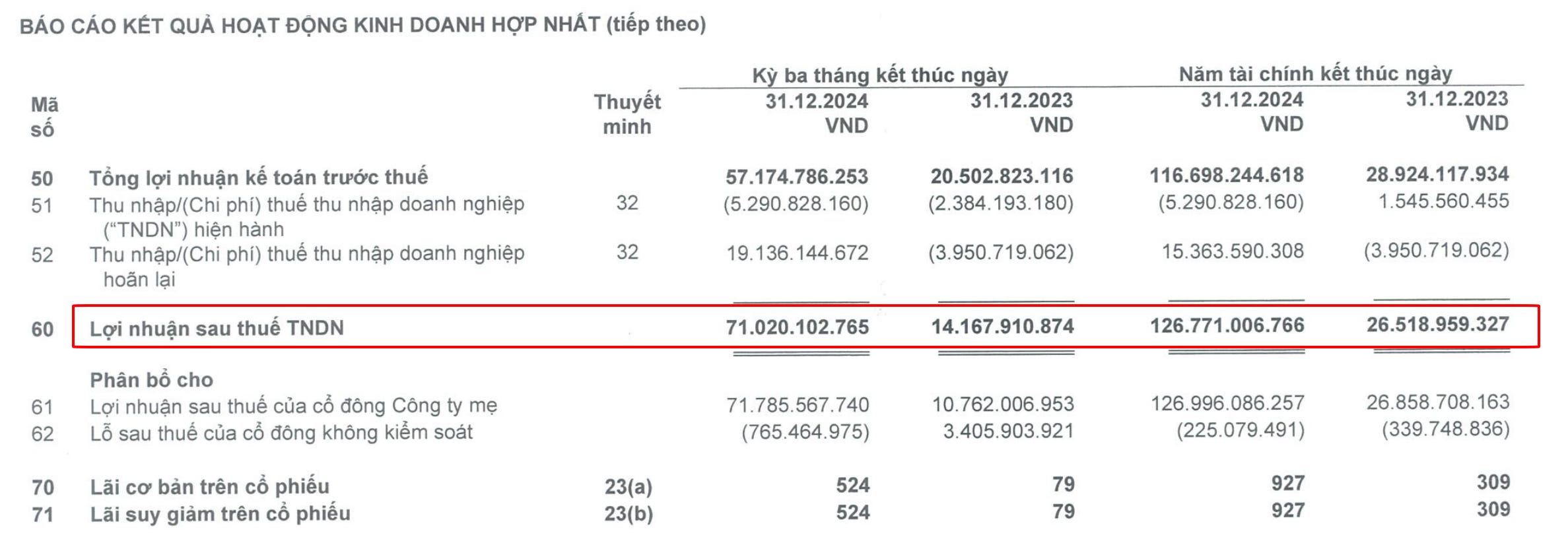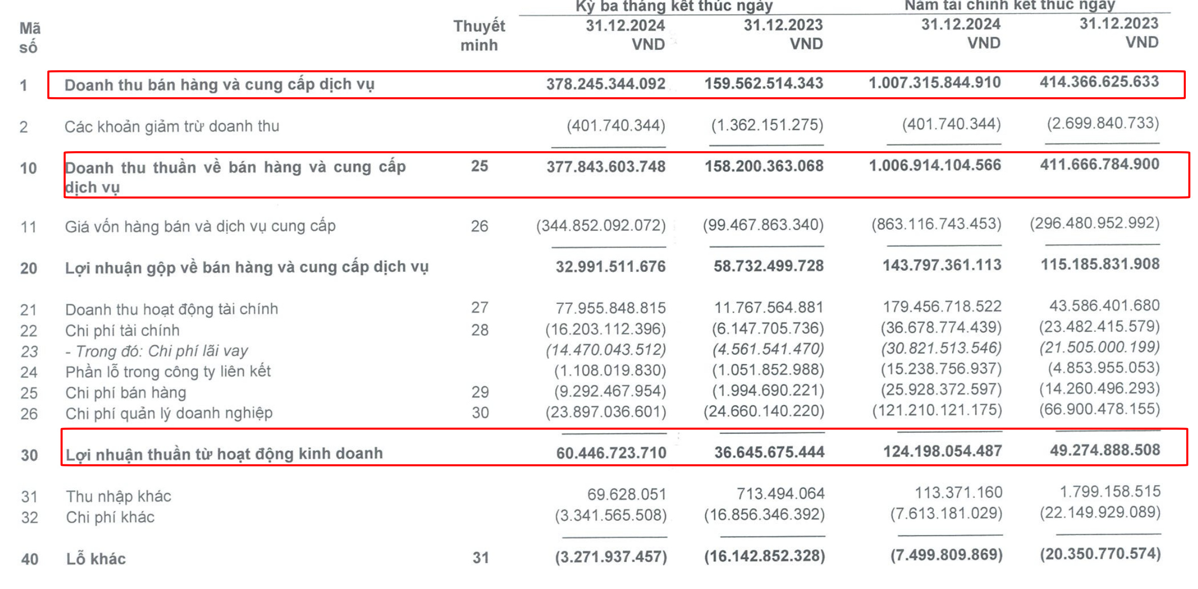 LSNT của doanh nghiệp tăng trưởng khá tốt svck khi Quý 4/2023 chỉ đạt quanh 14k tỷ và tăng khá cao gấp 6 lần ở Quý 4/2024, đây là mốc lợi nhuận kỷ lúc từ 3 năm trở lại đây của doanh nghiệp ghi nhận một thành quả to lớn từ 2 dự án ATSH và ATVNCG.