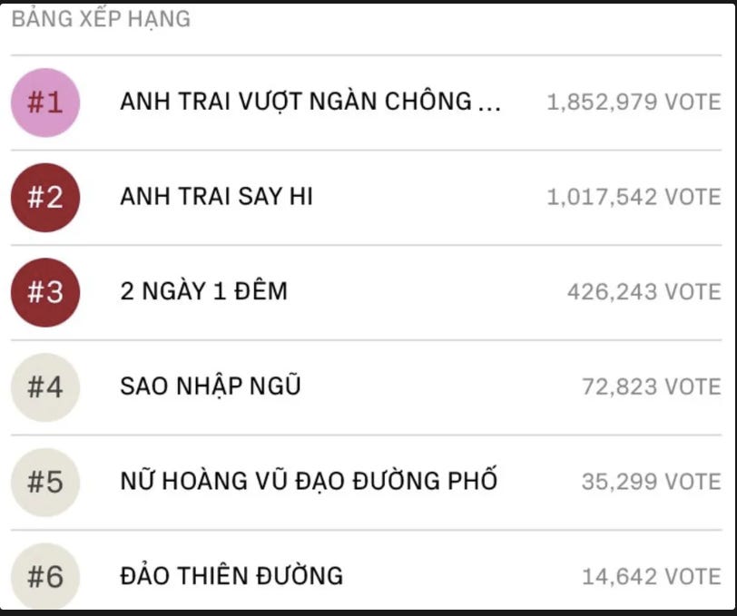 Đây cũng là một phần nhờ chương trình dài tập Anh trai say hi và Anh trai vượt ngàn chông gai đã có những content, thu hút và dàn cast được nhiều khá giả, các bạn trẻ yêu mến nên được quan tâm và là điểm nổi bật trong làn sóng âm nhạc những ngày vừa qua.