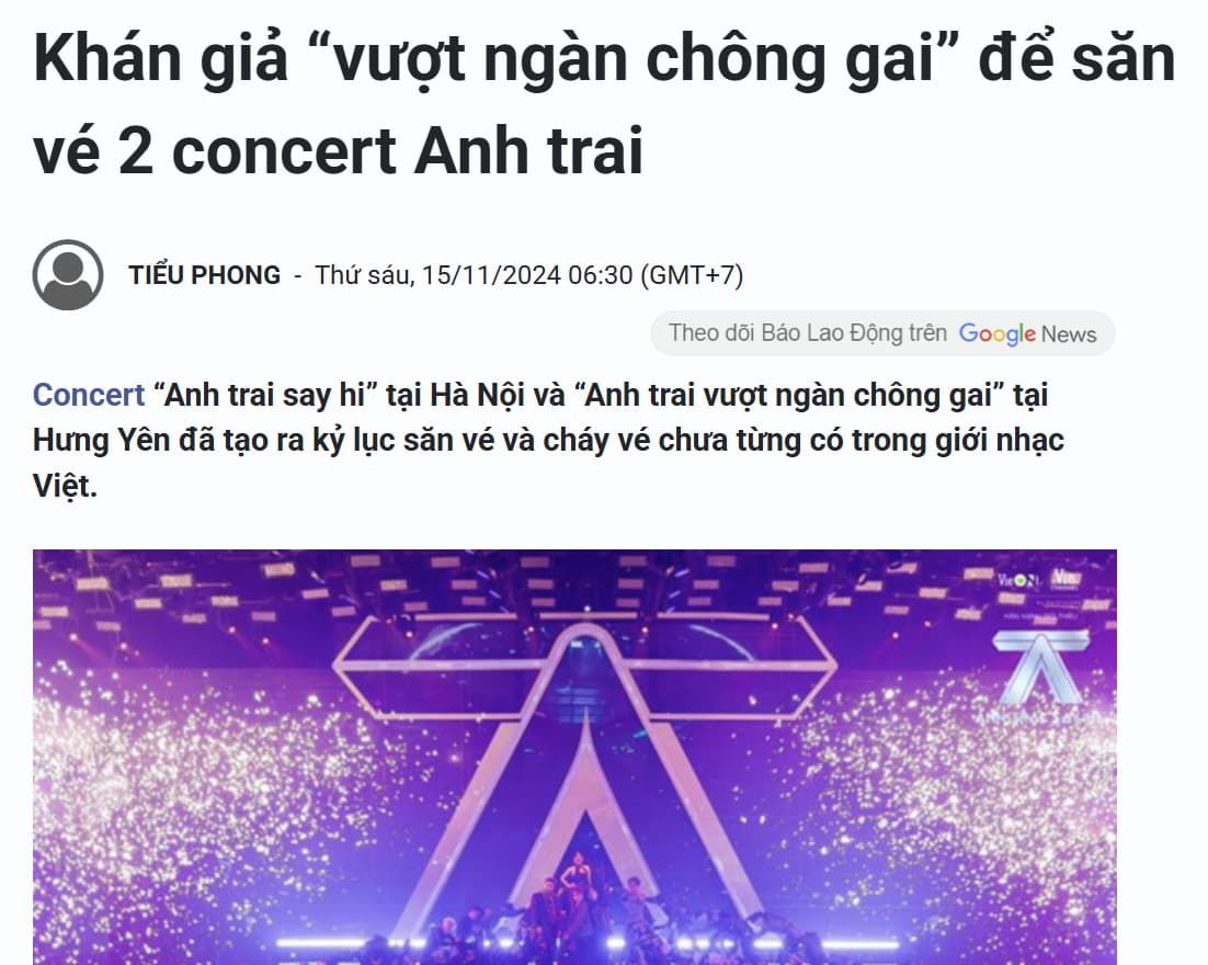 YEG tháng 3 đã công bố bán vé Concert ATVNCG hiện tại giá vé ở hạng thương gia đã bán hết chỉ duy nhất 10 suất với giá 8tr => 80tr đã được thu về