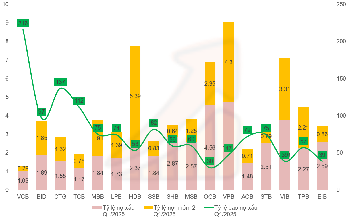 Nếu việc đầu tư dễ như ăn kẹo như vậy thì chẳng có các câu chuyện nhiều người thua lỗ sấp mặt trên thị trường. Vì khi nhìn vào các chỉ tiêu cơ bản để đánh giá chất lượng tài sản của ngân hàng như: Tỷ Lệ Nợ Xấu, Nợ Nhóm 2 và Tỷ lệ bao phủ Nợ Xấu (Hình 2) có thể thấy nhóm ngân hàng có định giá P/B thấp thường là nhóm có chất lượng tài sản kém với Tỷ lệ Nợ Xấu và Nợ Nhóm 2 khá cao và Tỷ lệ bao phủ nợ xấu thấp.