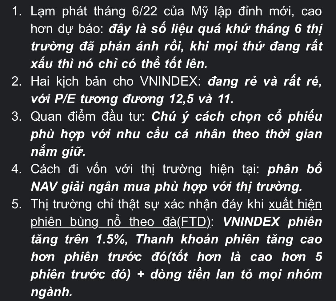dự báo lạm phát mỹ đang vùng đỉnh dồi , tỷ lệ thất nghiệp của mỹ lại đang rất thấp , cứ xác định từ nay đến cuối năm nó nâng ls 3 lần mỗi lần 0.75 thì tổng ls=4% và ( kéo lạm phát xuống 4% khoảng năm 2023 , kéo đc xuống 3% chắc 2024 ) , ls lên 4% lúc này thất nghiệp lại tăng lên lại có bơm tiền
