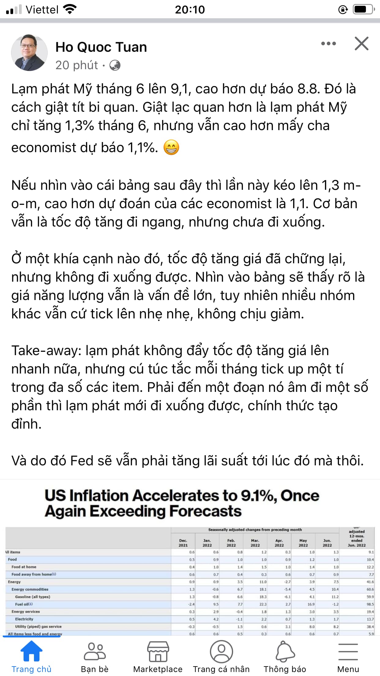 Chỉ cố CPI của mỹ tho lại tăng 9.1%. Dự là VNI còn đi viện thời gian nữa do Fed tăng lãi suất