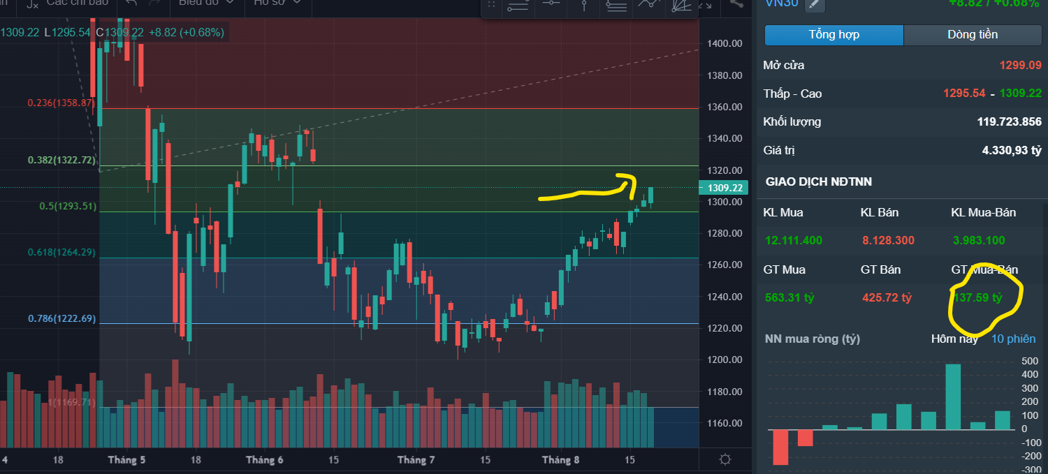 Nguyên tắc thị trường là ăn được thì tém tém lại, khoe lãi rồi sớm muốn nó vả cho không ra gì ngay cơ mà cái này mõm được mà - nó trung bình giá xuống và sóng " năm nớn" từ 13xx xuống 12xx thế quái nào mà giỏi vậy @dt1307