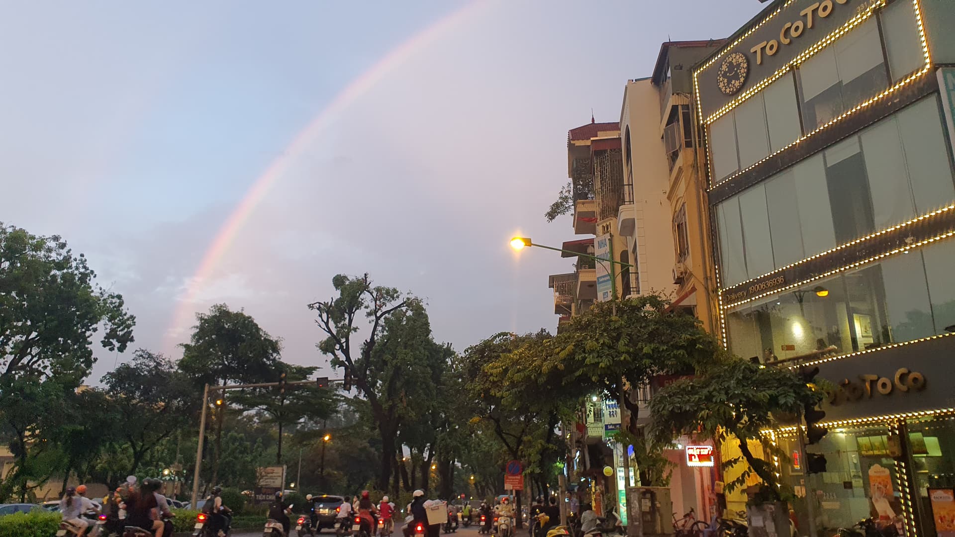 Chiều nay Hà Nội mưa to, bước ra khỏi công ty lại gặp cầu vồng a e ạ ![]()