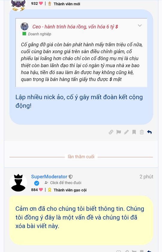 Cảm ơn đã phản ứng rất nhanh @SuperModerator thị trường giảm điểm thì bất cứ NDT nào đang cầm cổ đều lo lắng nhưng những thành phần Cl cứ lộng hành thì càng tệ.