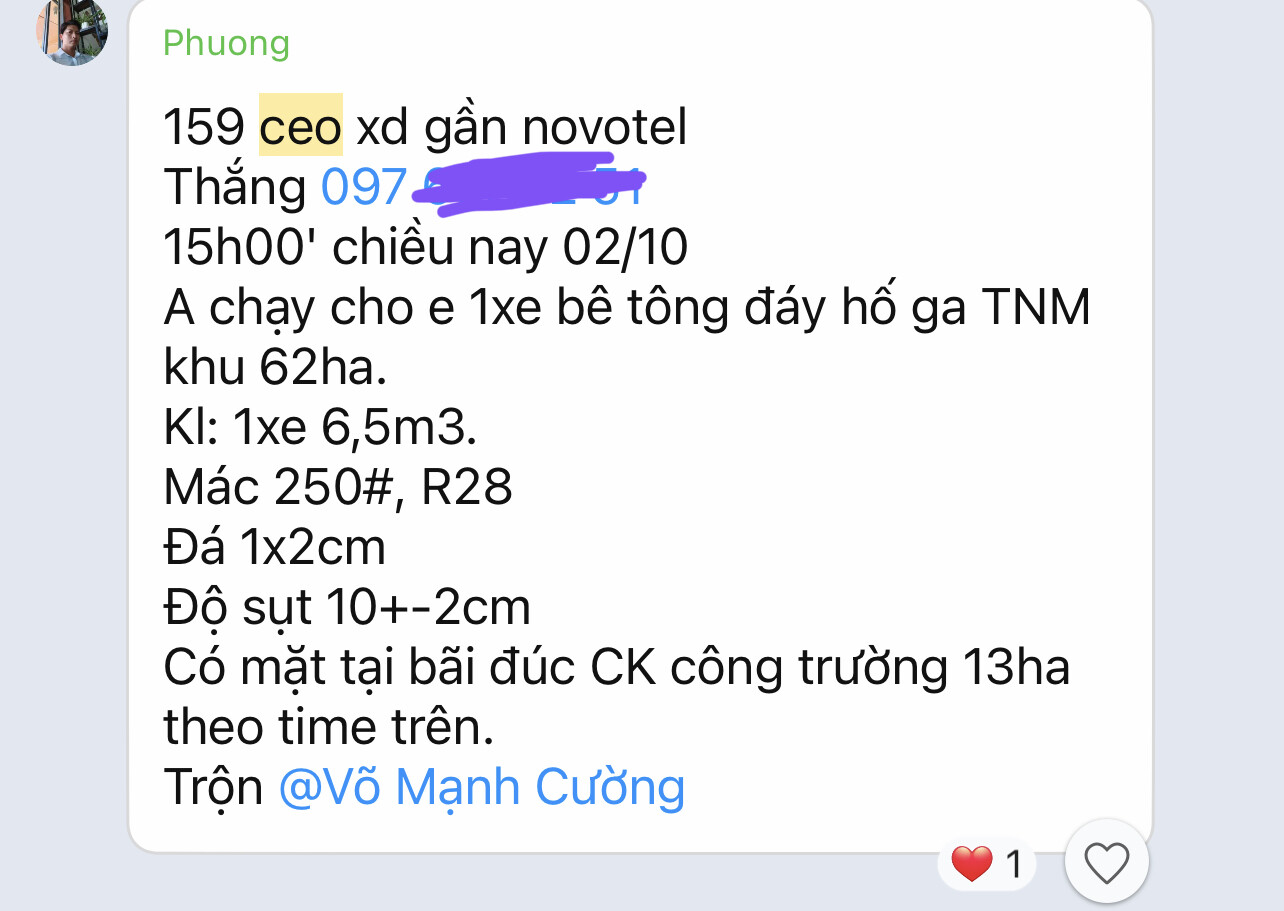 Anh nhắn nội dung rồi đó, hình công trường thì anh không có, mưa bão không ra.