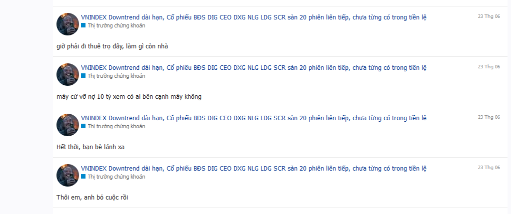Móe không cóng khi cổ giảm - chỉ thương mọi người buồn VL. Thị trường lọc lừa upbo kiểu này, thằng nào giảm sâu trước thì bật dậy mạnh thôi nhưng buồn cùng mọi người luôn.
