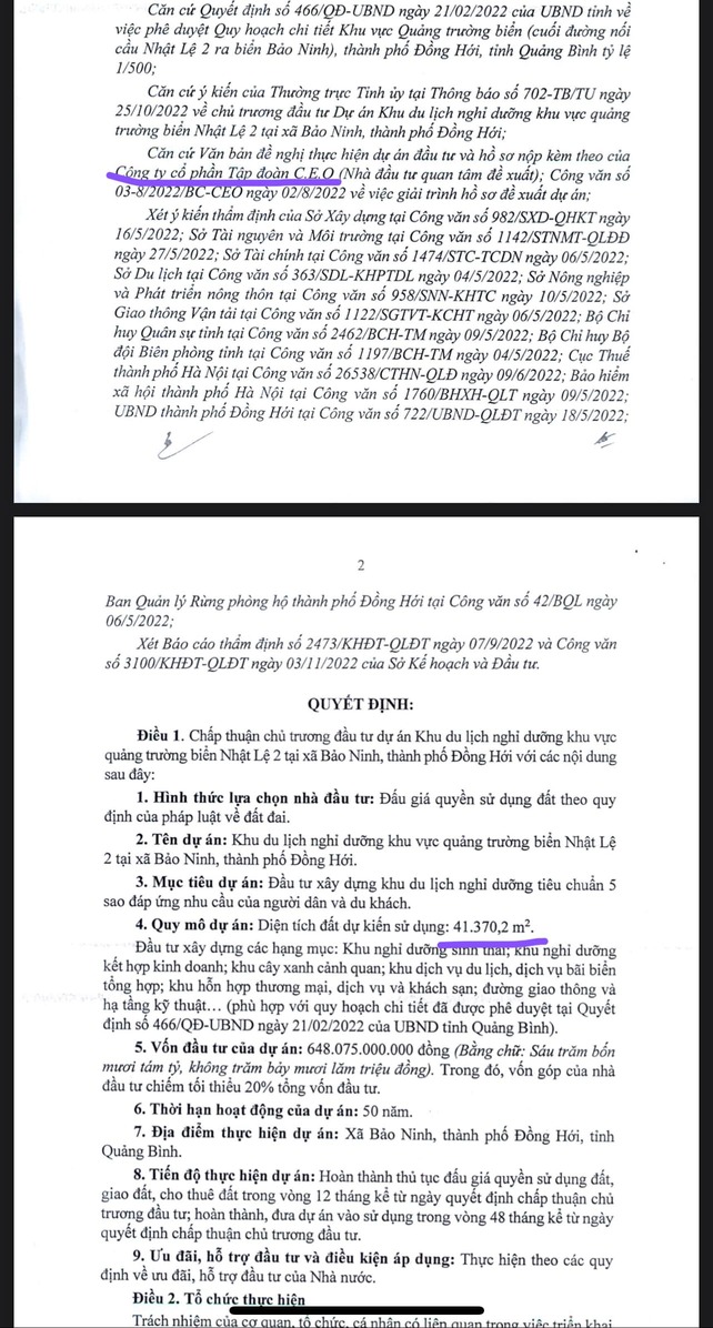 CEO tiếp tục được chấp nhận chủ trương đầu tư 41ha Khu du lịch nghỉ dưỡng quảng trường biển Nhật Lệ 2 tại Tp.Đồng Hới, Quảng Bình.