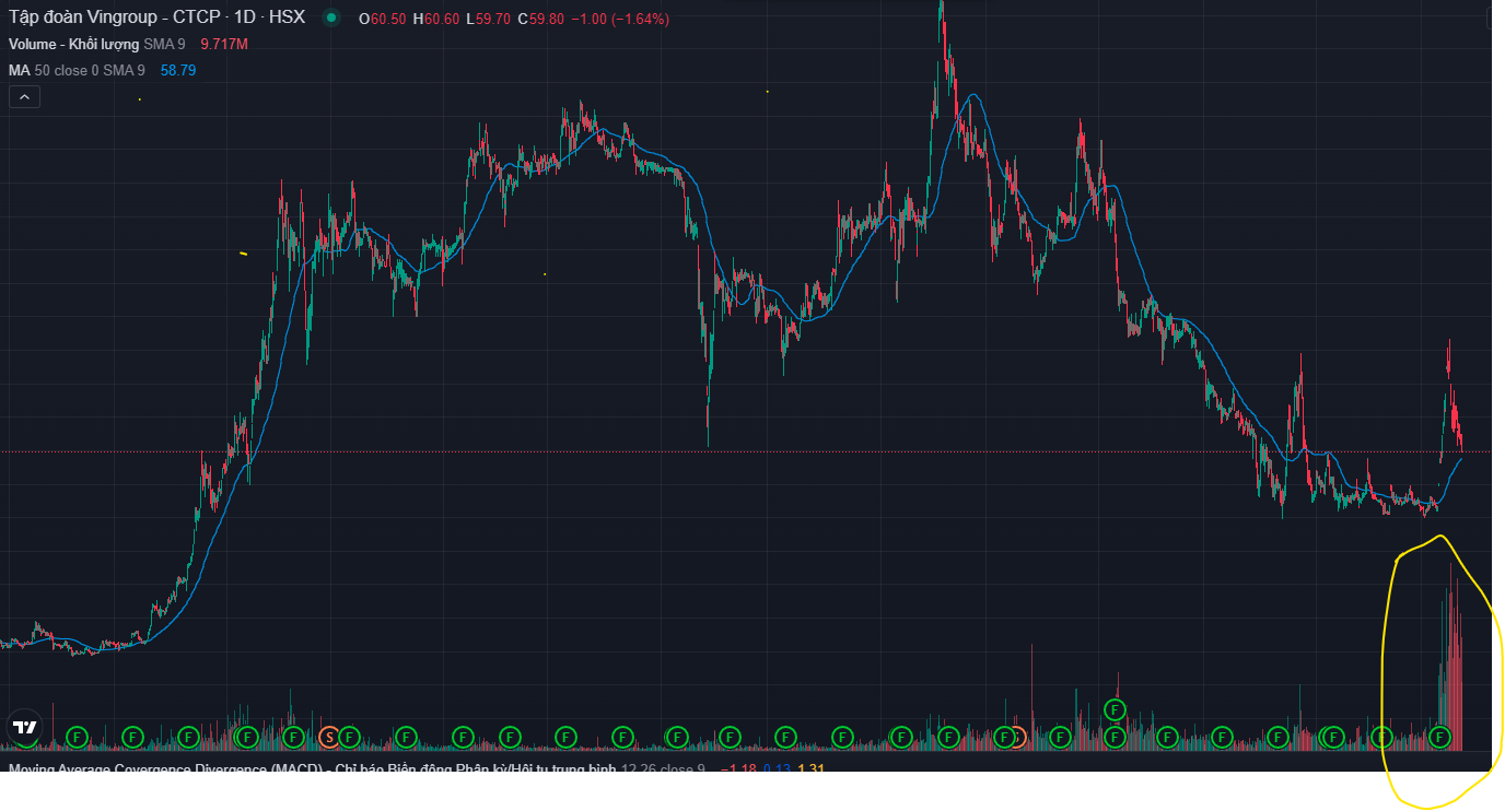 VIC đang có vol lịch sử từ trước đến này - lớn hơn 10-20 lần, lượng vol này đâu ra ??? ai đó đang ra hàng sang năm ra tiền cho Vinfast??? và nhắc lại cả bác V và VIC cho VFS mượn tổng 2.5 tỷ và câu hỏi là tiền đâu ra, nhẩm ra là cỡ 60.000 tỷ VND - sẽ rất nhiều tiền của người dần kẹt ở đây trên sàn.